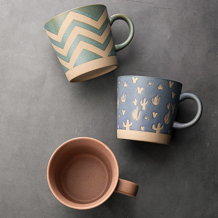 复古陶瓷马克杯粗陶咖啡杯牛奶杯家用日式创意茶杯办公室喝水杯子