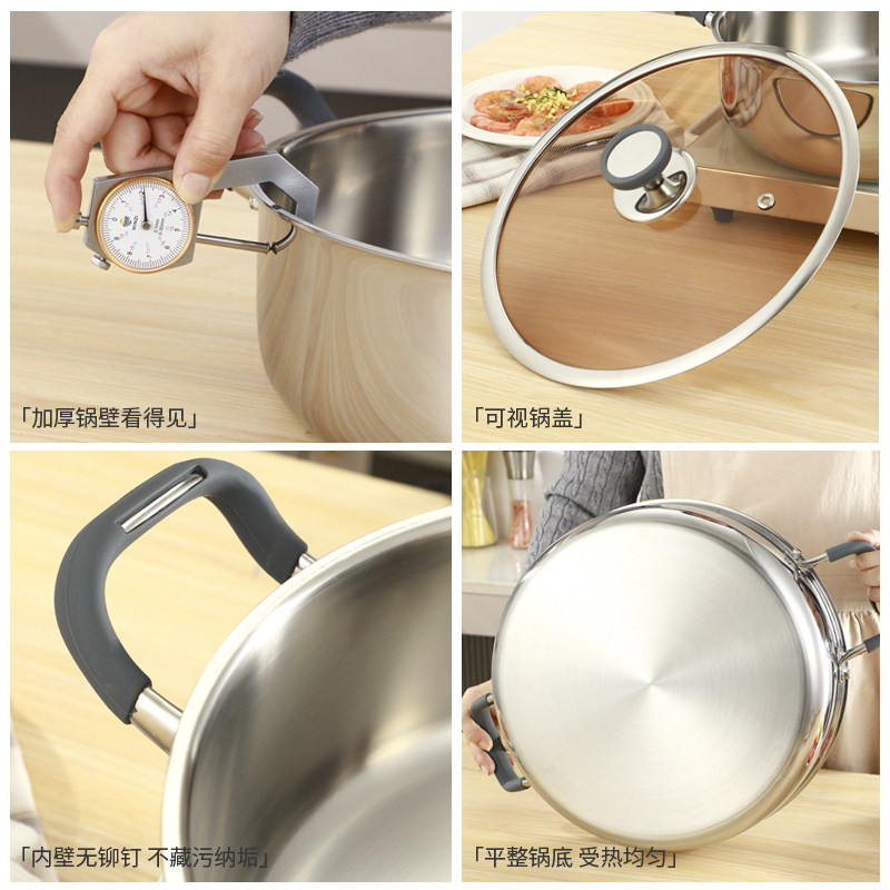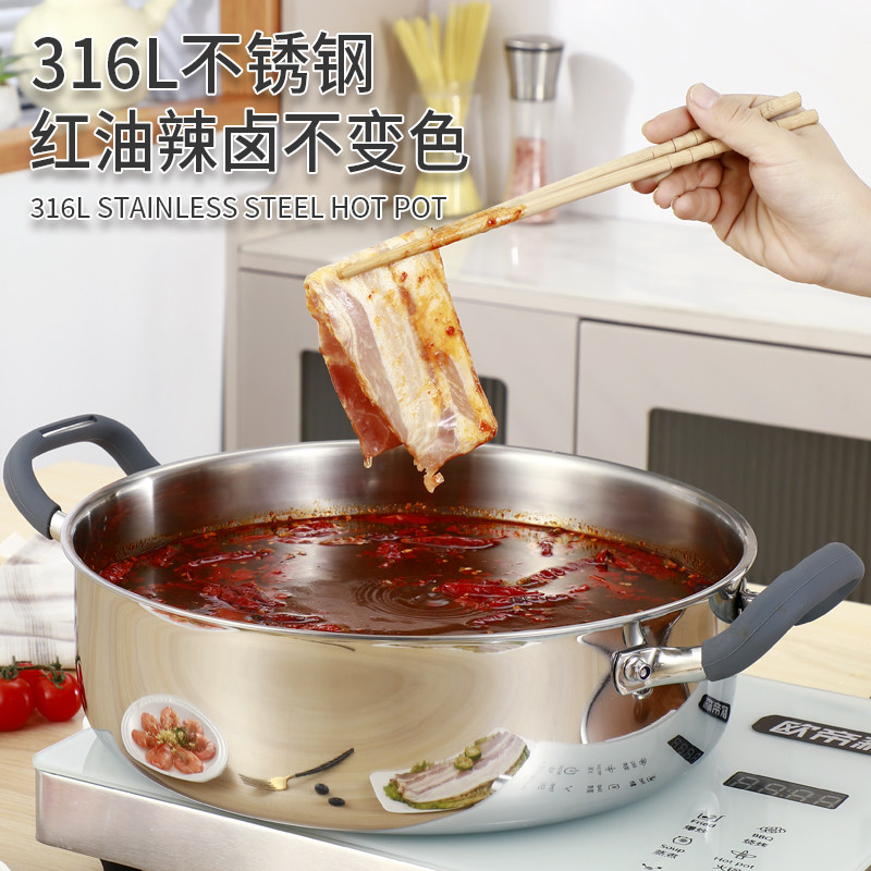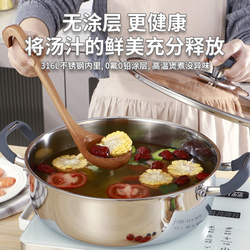 加厚食品级316不锈钢电磁炉汤锅火锅家用加深大容量一体成型