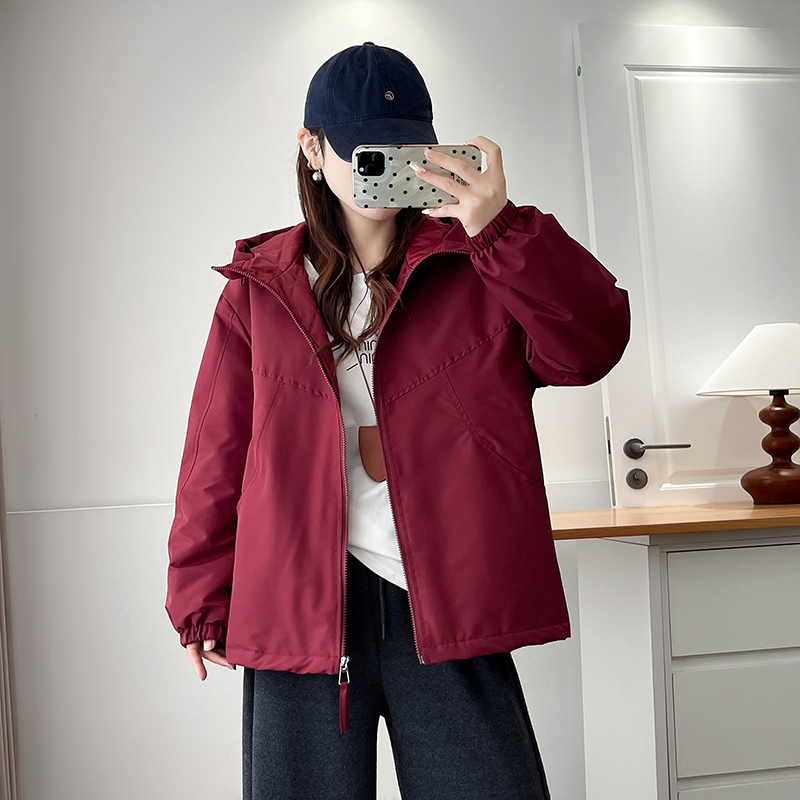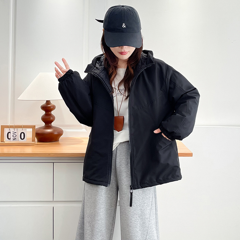 大码女装连帽加棉冲锋衣2025秋冬季新款防风保暖夹克加厚棉衣外套