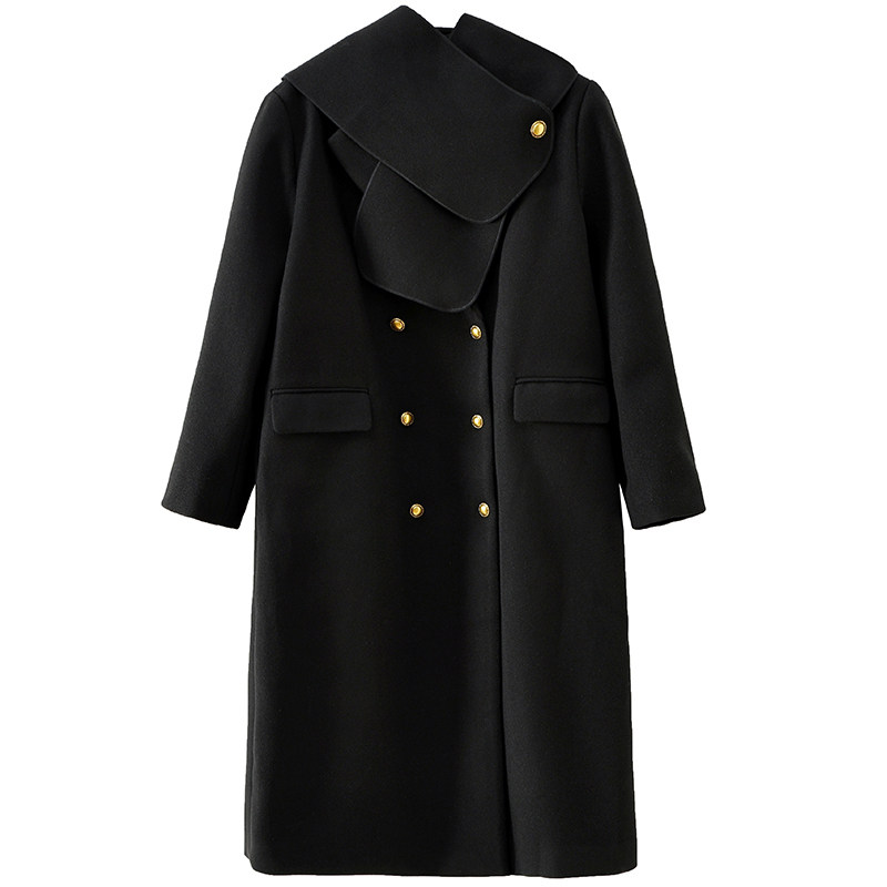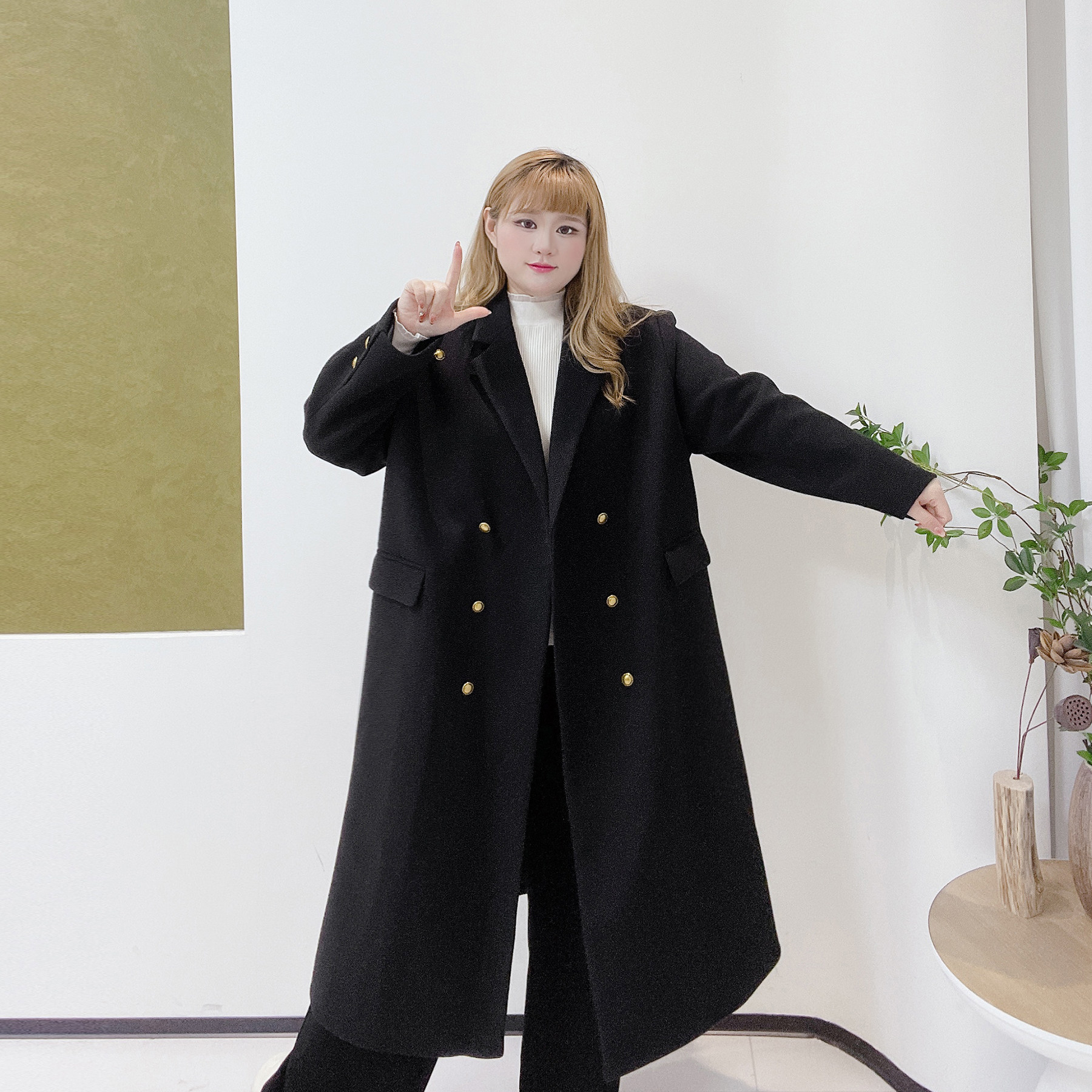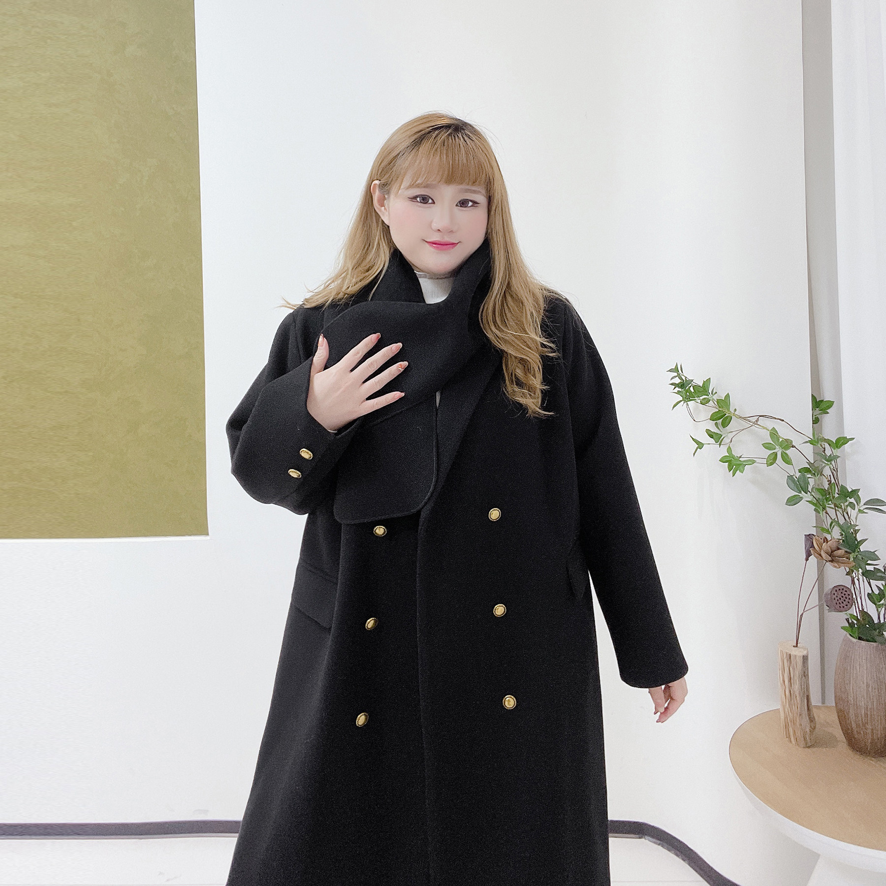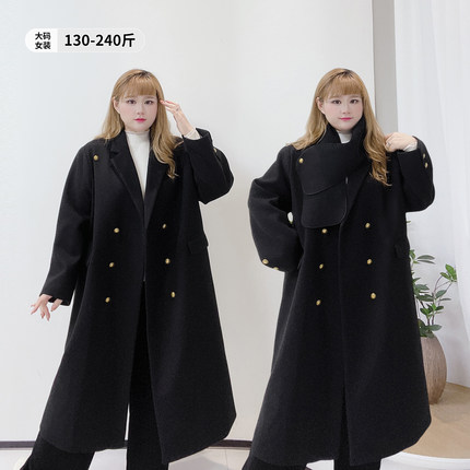 韩系大女主高级感呢子大衣胖莹莹大码女装秋冬中长款遮肉围巾外套