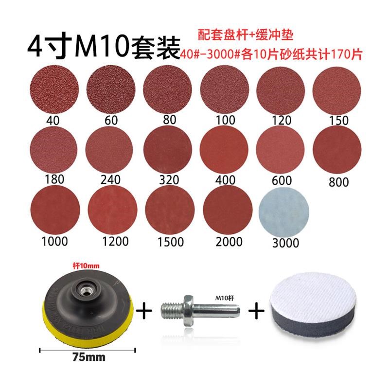 1寸2寸砂纸片自粘式植绒砂纸圆y形3寸4寸5寸抛光角磨机磨片盘套装