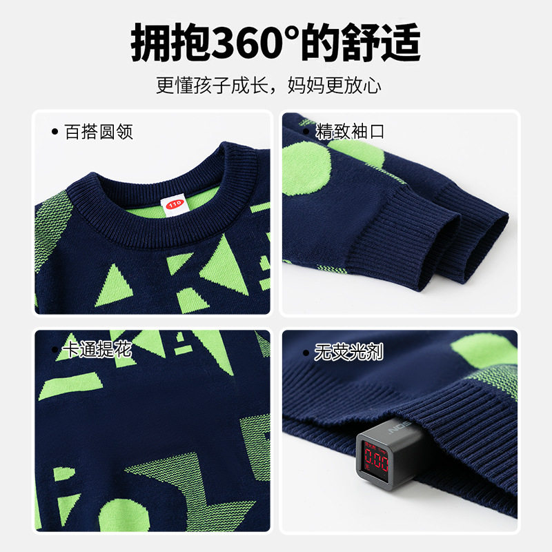 男童针织毛衣双层2025年秋冬季儿童装时尚套头保暖毛线衫上衣