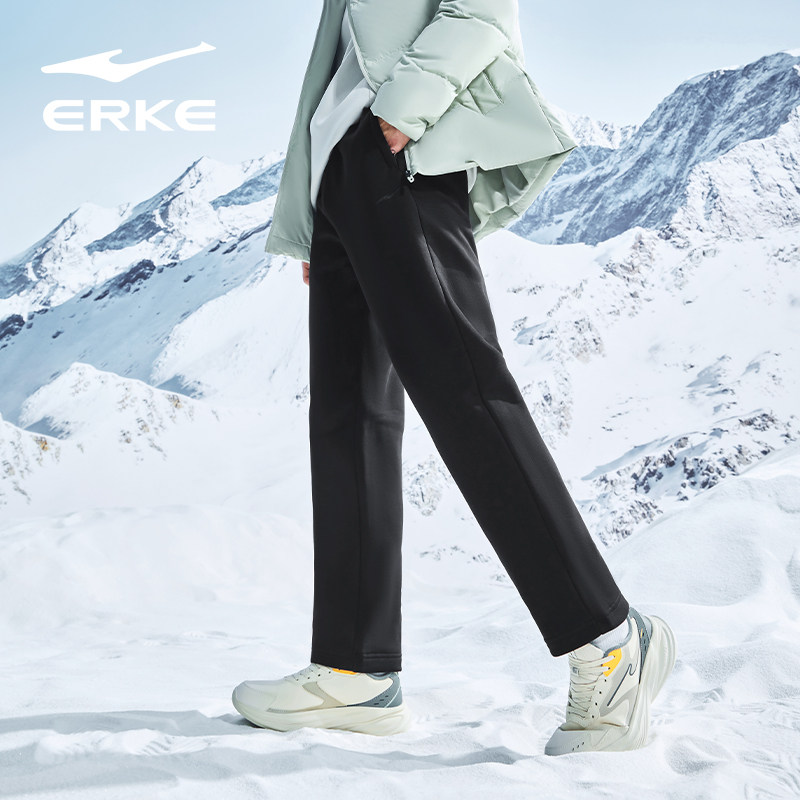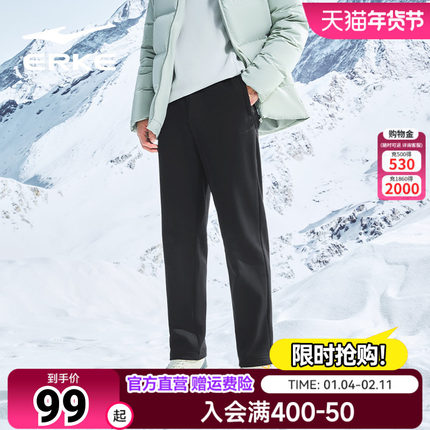 鸿星尔克加厚运动裤男秋冬新款男士针织保暖卫裤休闲直筒长裤男裤