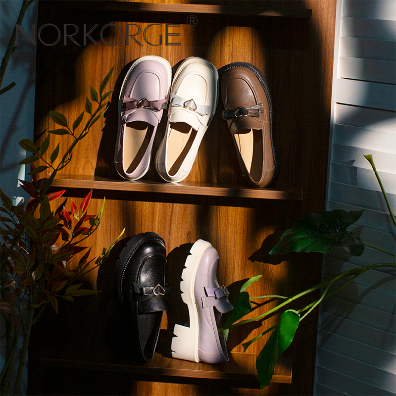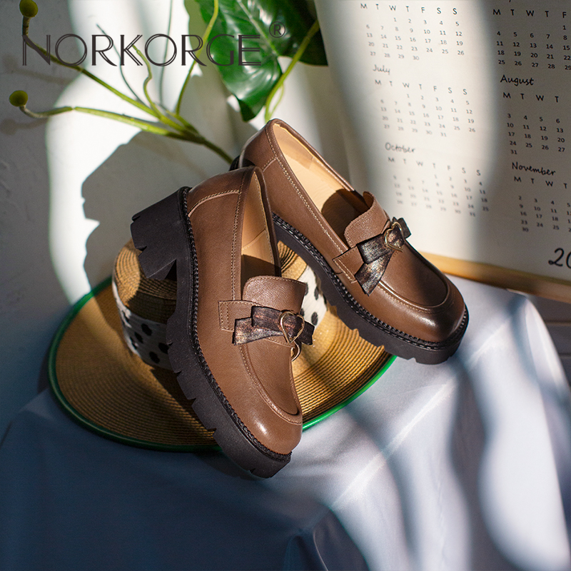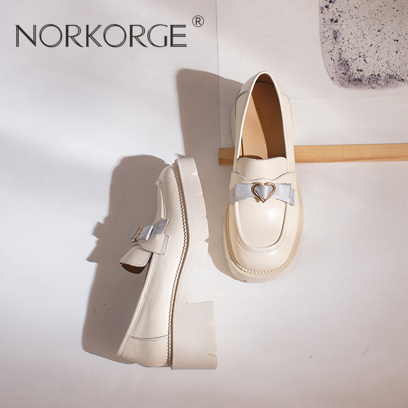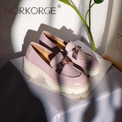 2025新款春秋复古仙女风爱心蝴蝶结精致厚底乐福鞋真皮粗跟高跟鞋