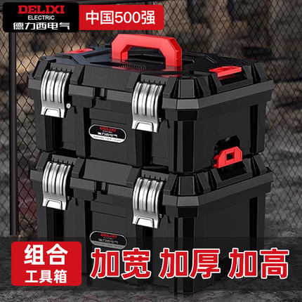 德力西电气工具箱工业级家用多功能收纳箱套装电工冲击钻五金工具