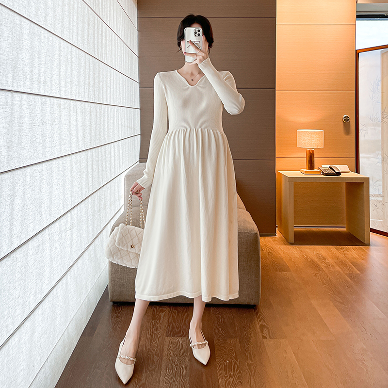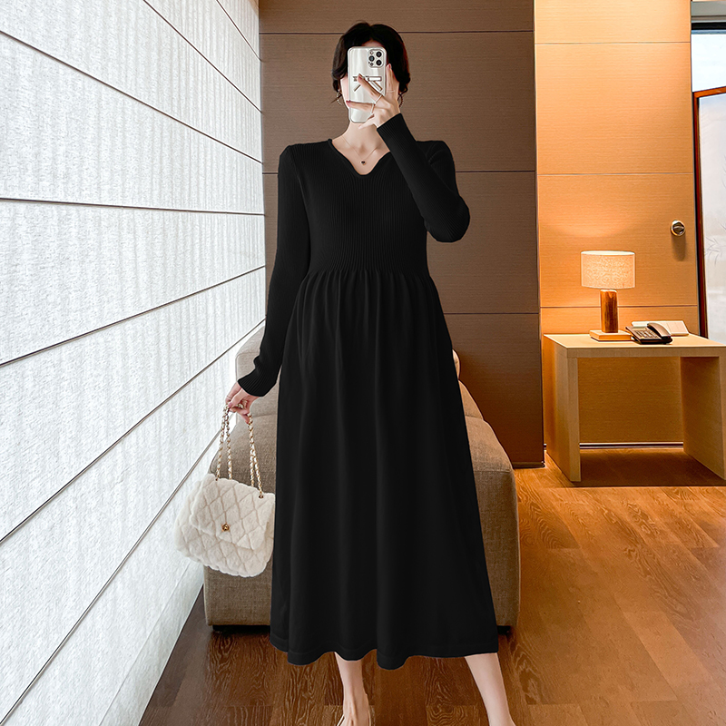 孕妇装秋冬装长袖针织毛衣连衣裙