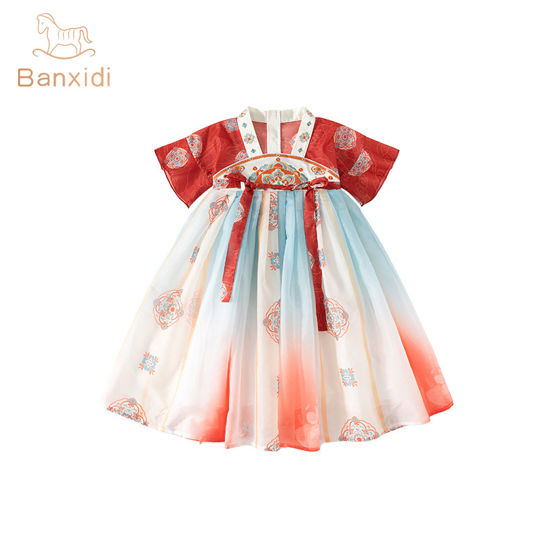 汉服女童连衣裙夏装国风宝宝周岁礼服裙子儿童古风公主裙夏季唐装
