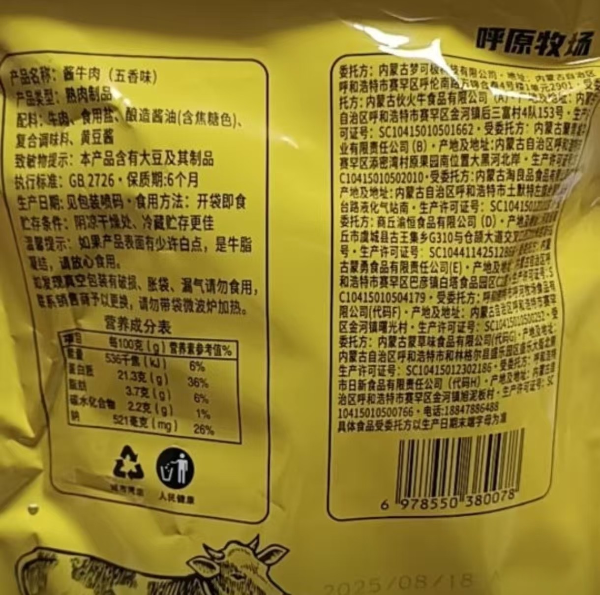 内蒙直发草原酱牛肉健身后腿肉熟食开袋即食150g*5包