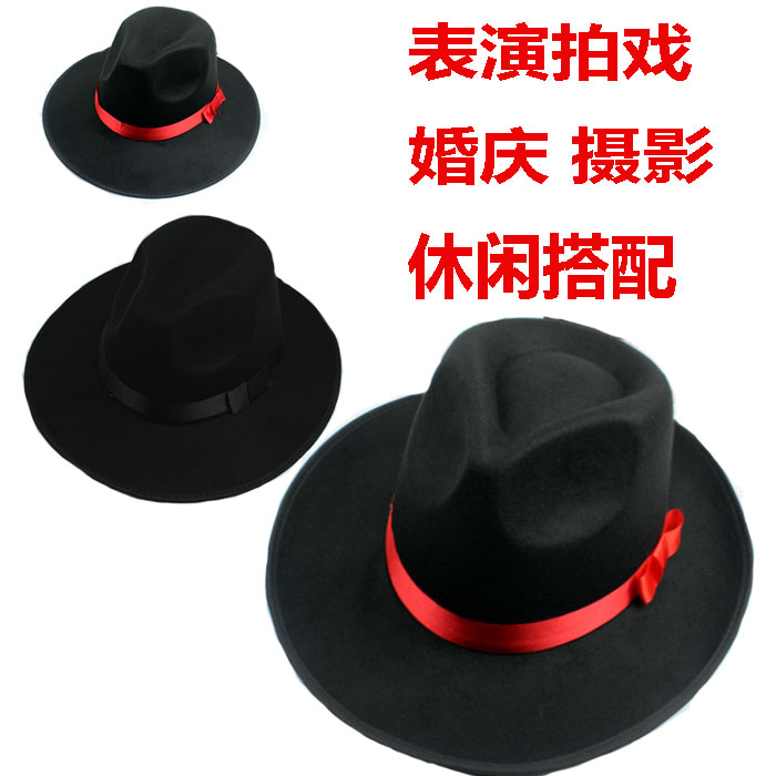 上海滩男士大沿礼帽中式结婚帽子舞台婚庆影楼新郎帽古装摄影道具