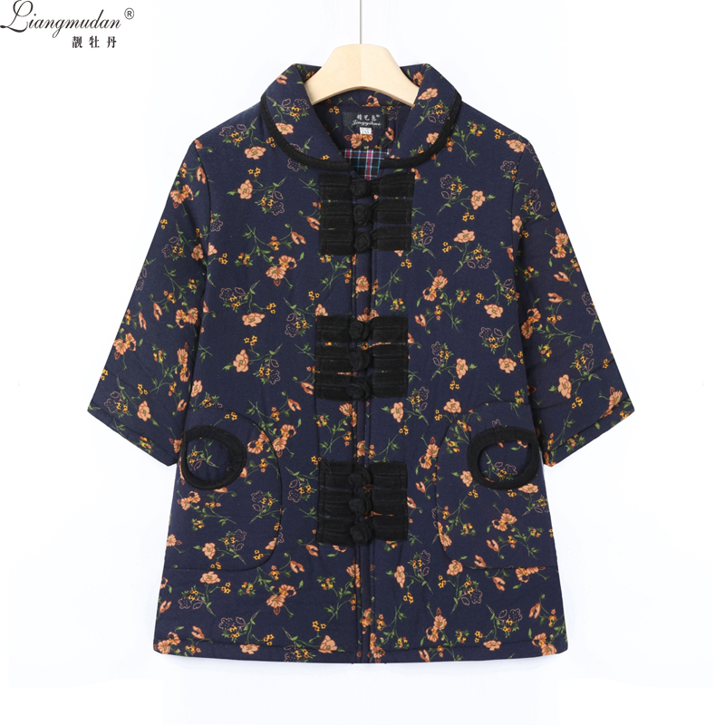中老年女装秋冬季新款中袖棉衣奶奶装民族风加厚复古盘扣棉袄外套