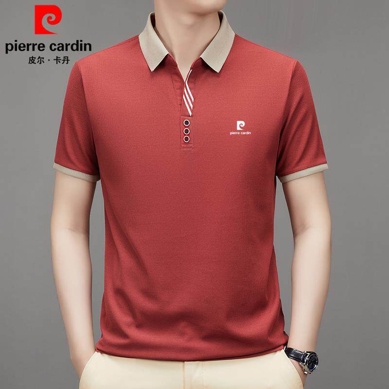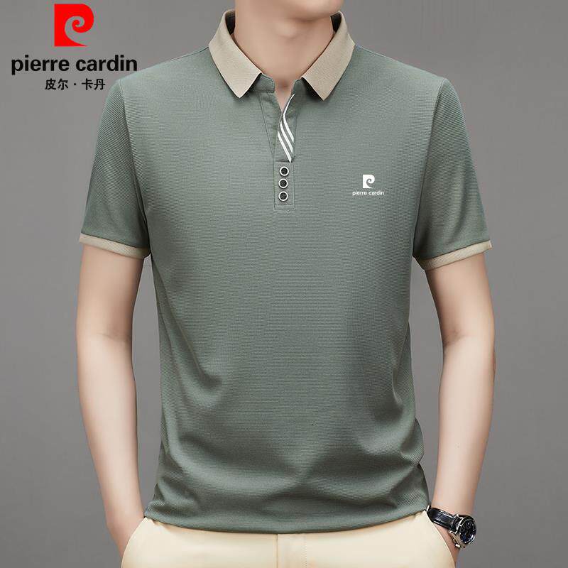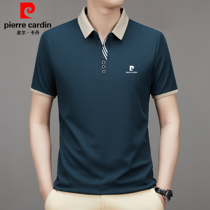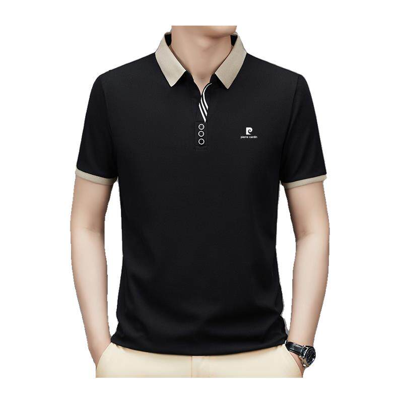 皮尔卡丹2024新款男士桑蚕丝短袖T恤夏季中年翻领休闲Polo衫上衣