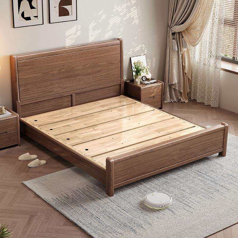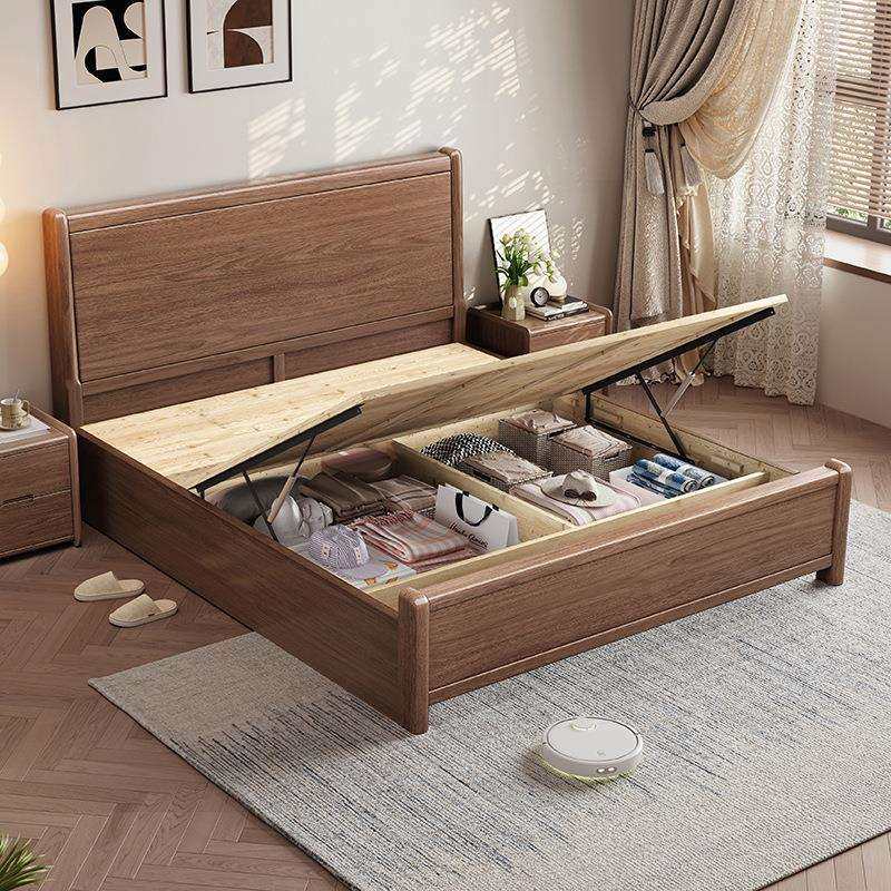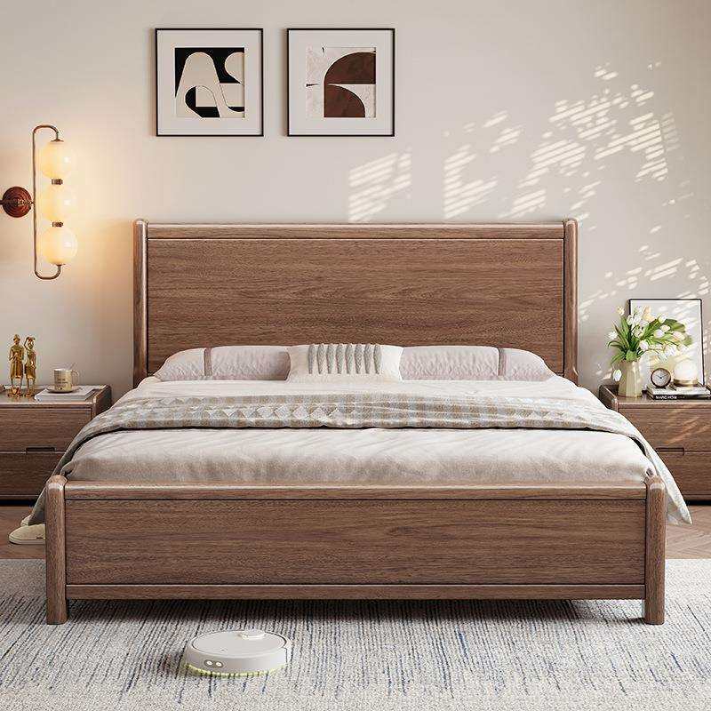 德式实木床1.8m胡桃木卧室现代简约双人大床主卧复古轻奢储物婚床