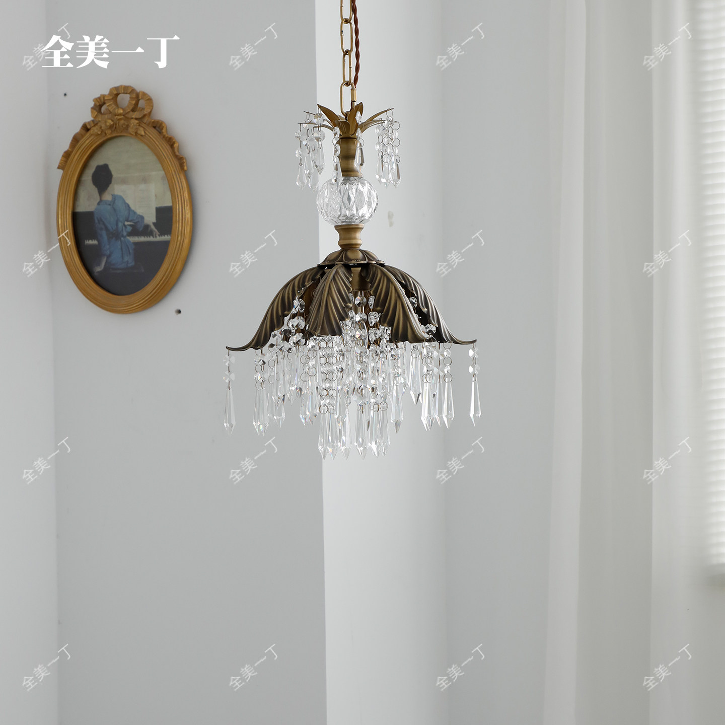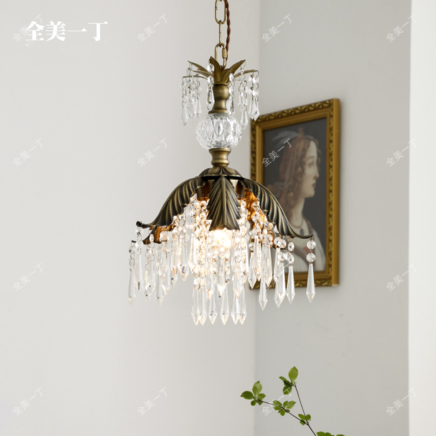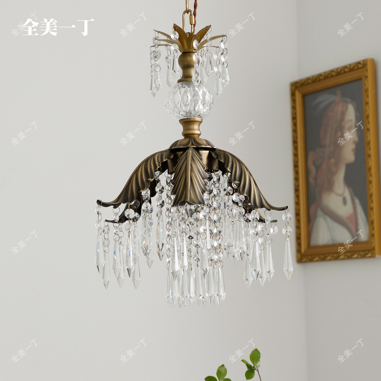 全美一丁法式田园复古餐厅水晶吊灯床头衣帽间过道玄关黄铜灯具