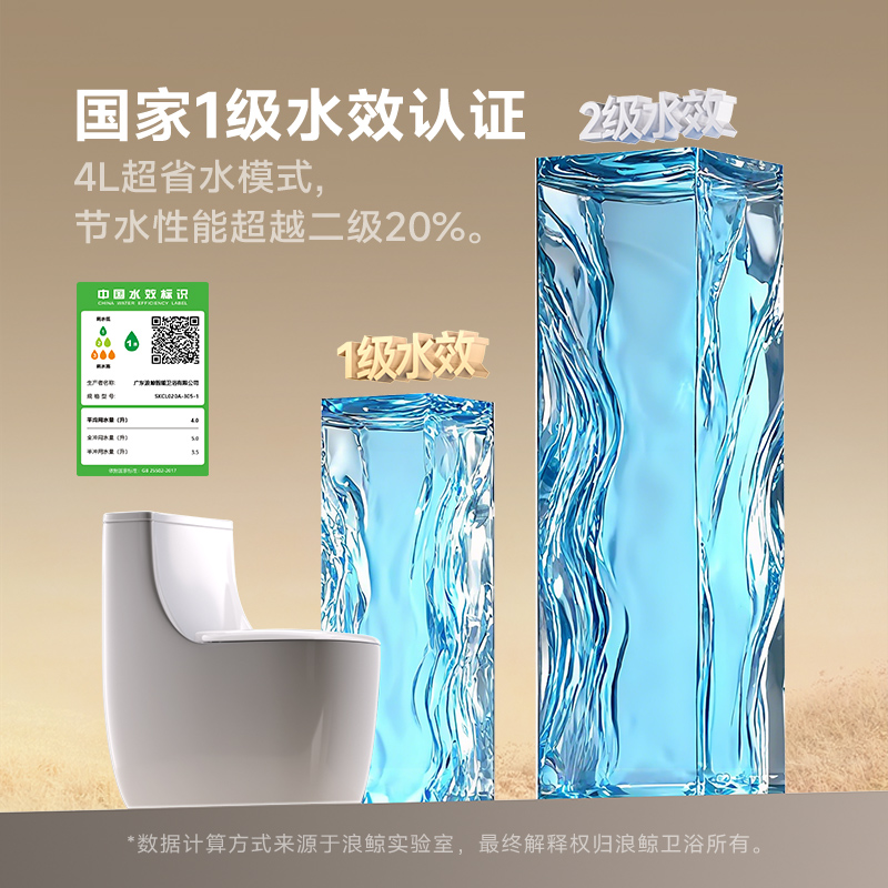 浪鲸卫浴马桶家用坐便器漩涡虹吸式小户型易洁节水020