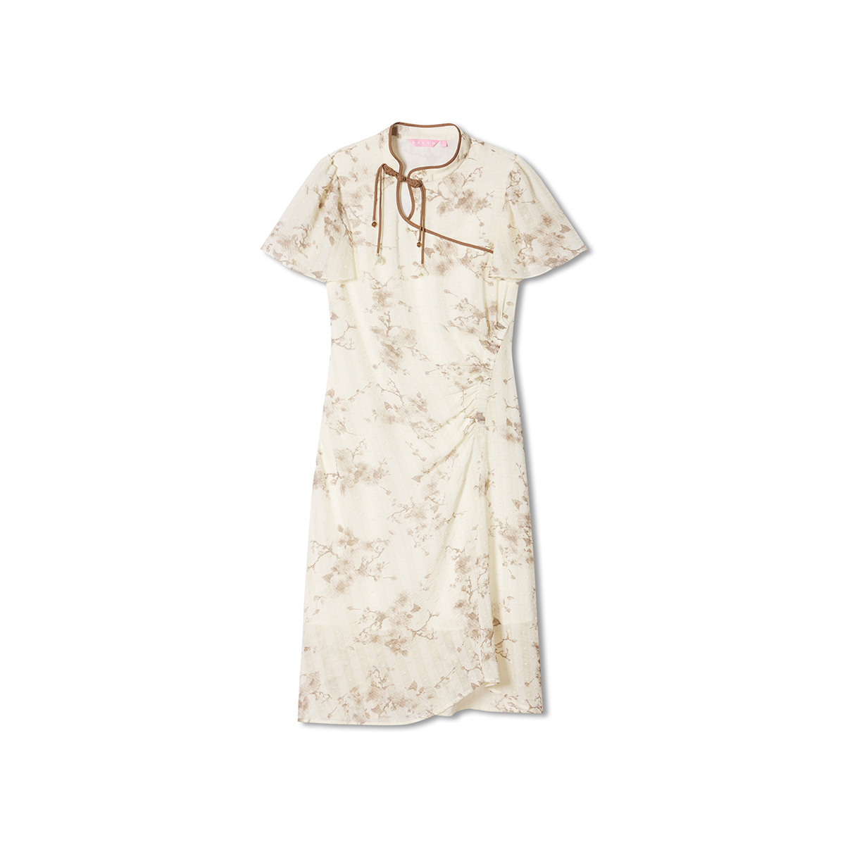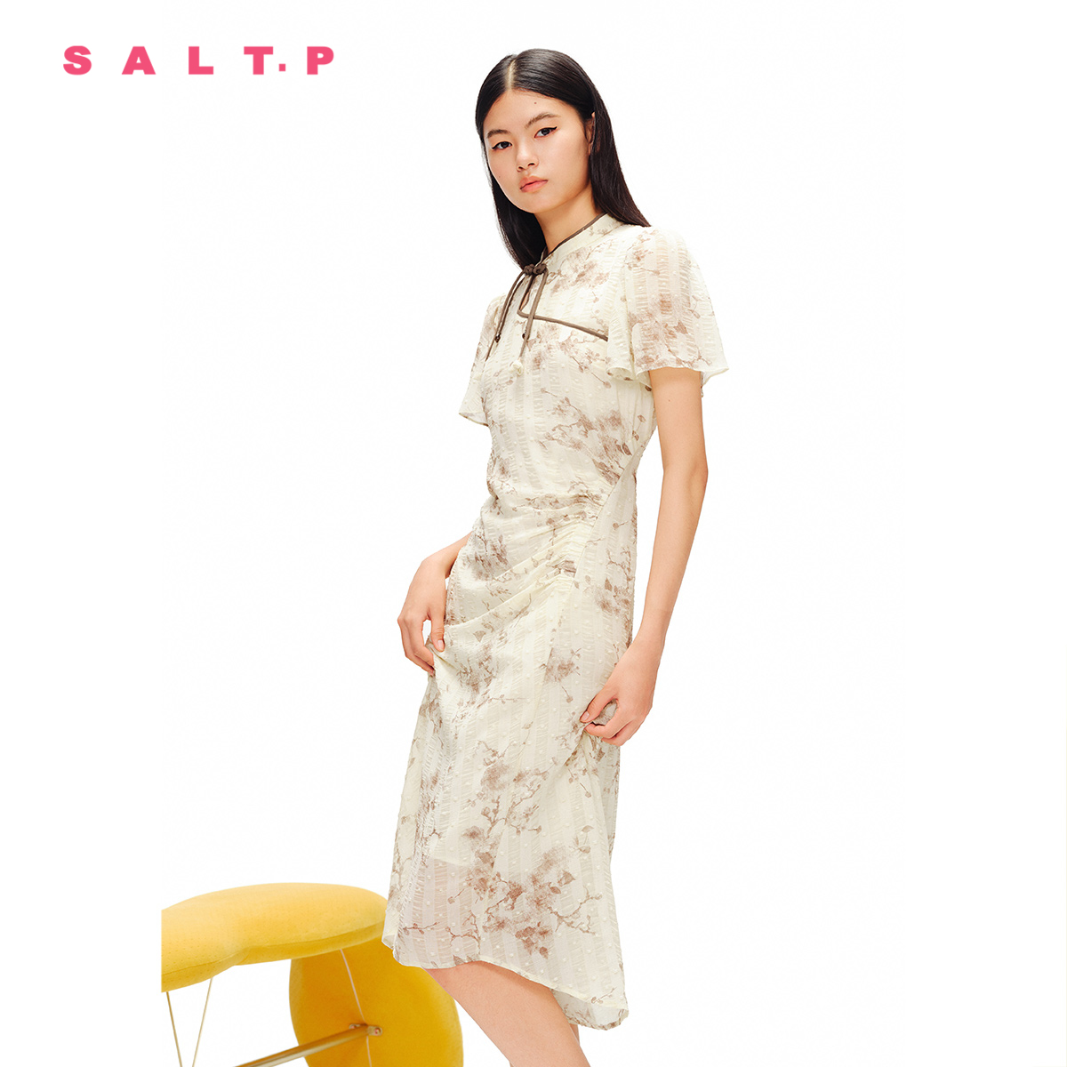 SALT.P可颜新中式国风盘扣印花立领修身旗袍裙连衣裙2024夏