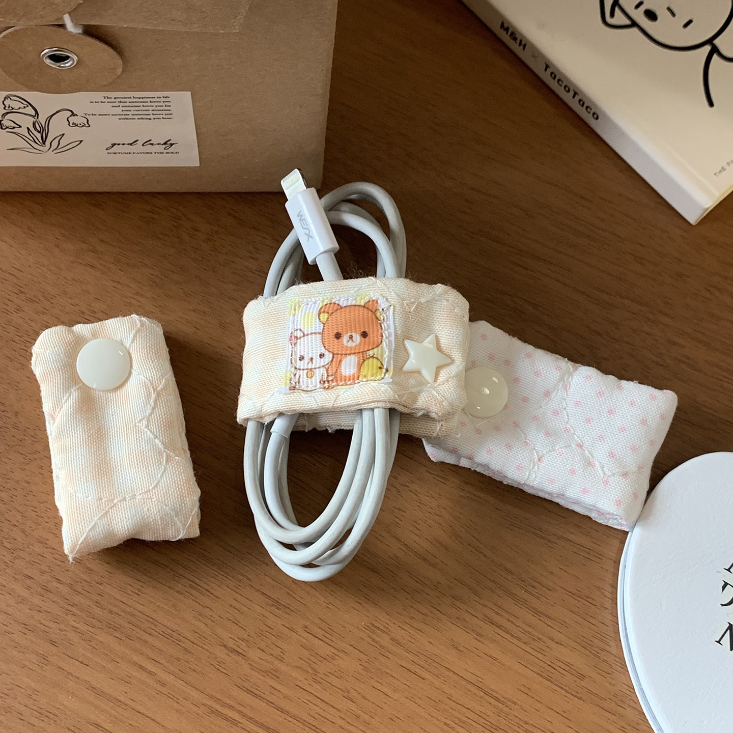 卡通布艺数据线绑线带固定器卡扣理线器收纳扣充电线整理收纳神器