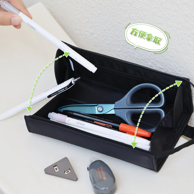 日本kokuyo国誉大容量笔袋Campus横开笔盒简约日系学生文具盒考试对开式180度平摊收纳包防水耐脏官方旗舰店