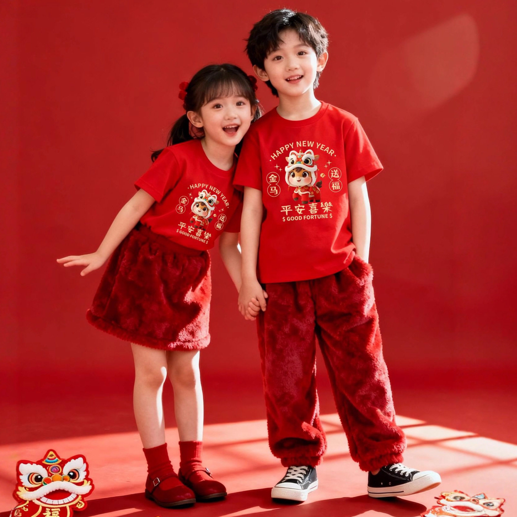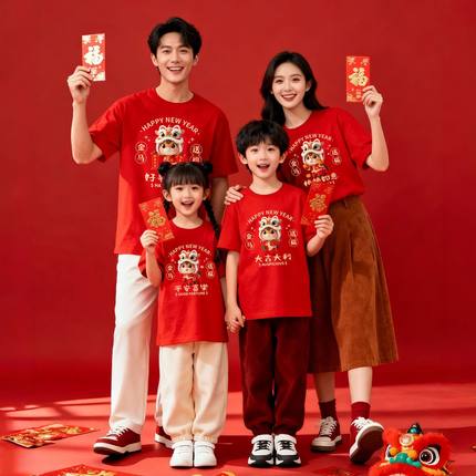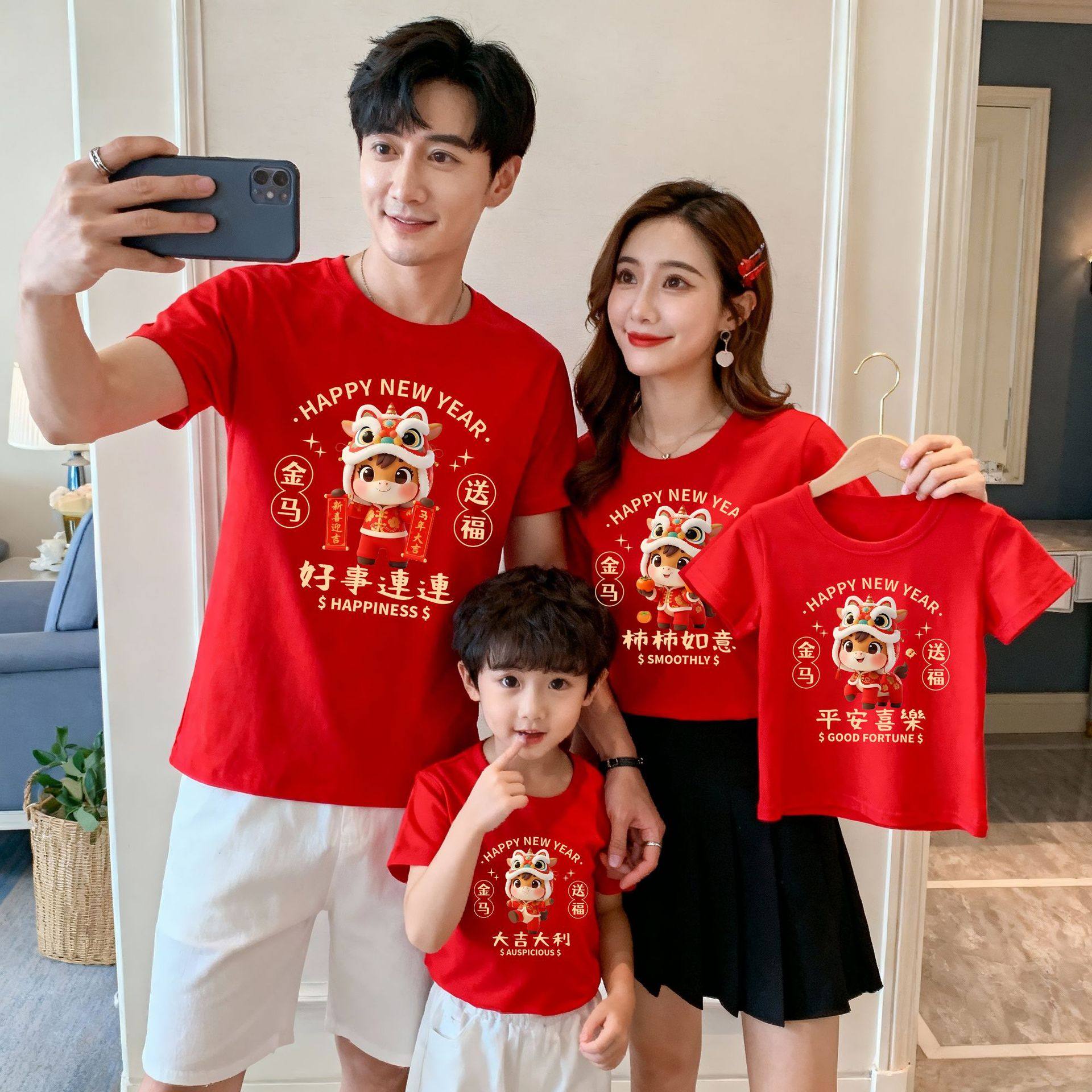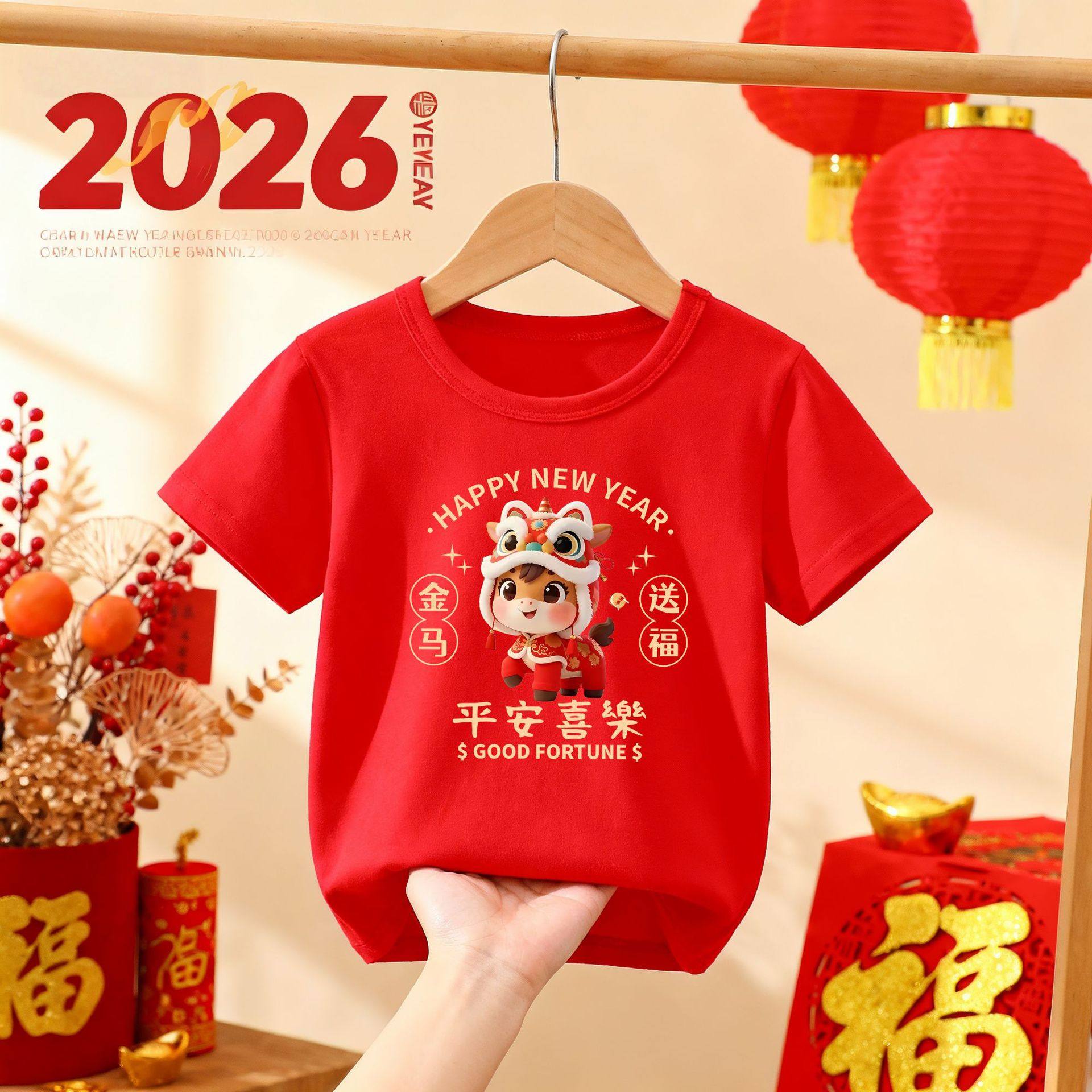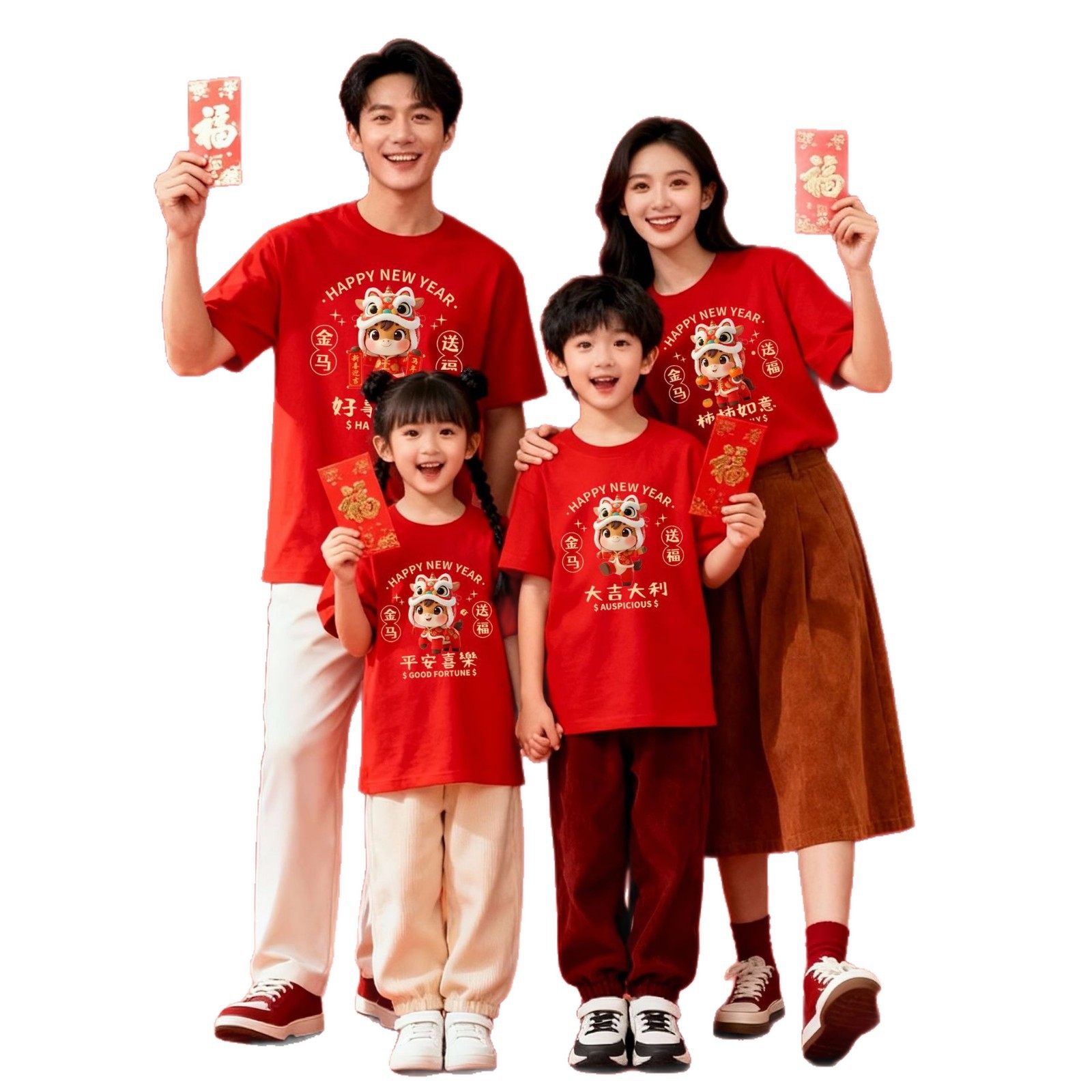 2026本命年系列红色短袖亲子装t恤马宝宝喜庆过年衣服纯棉全家福