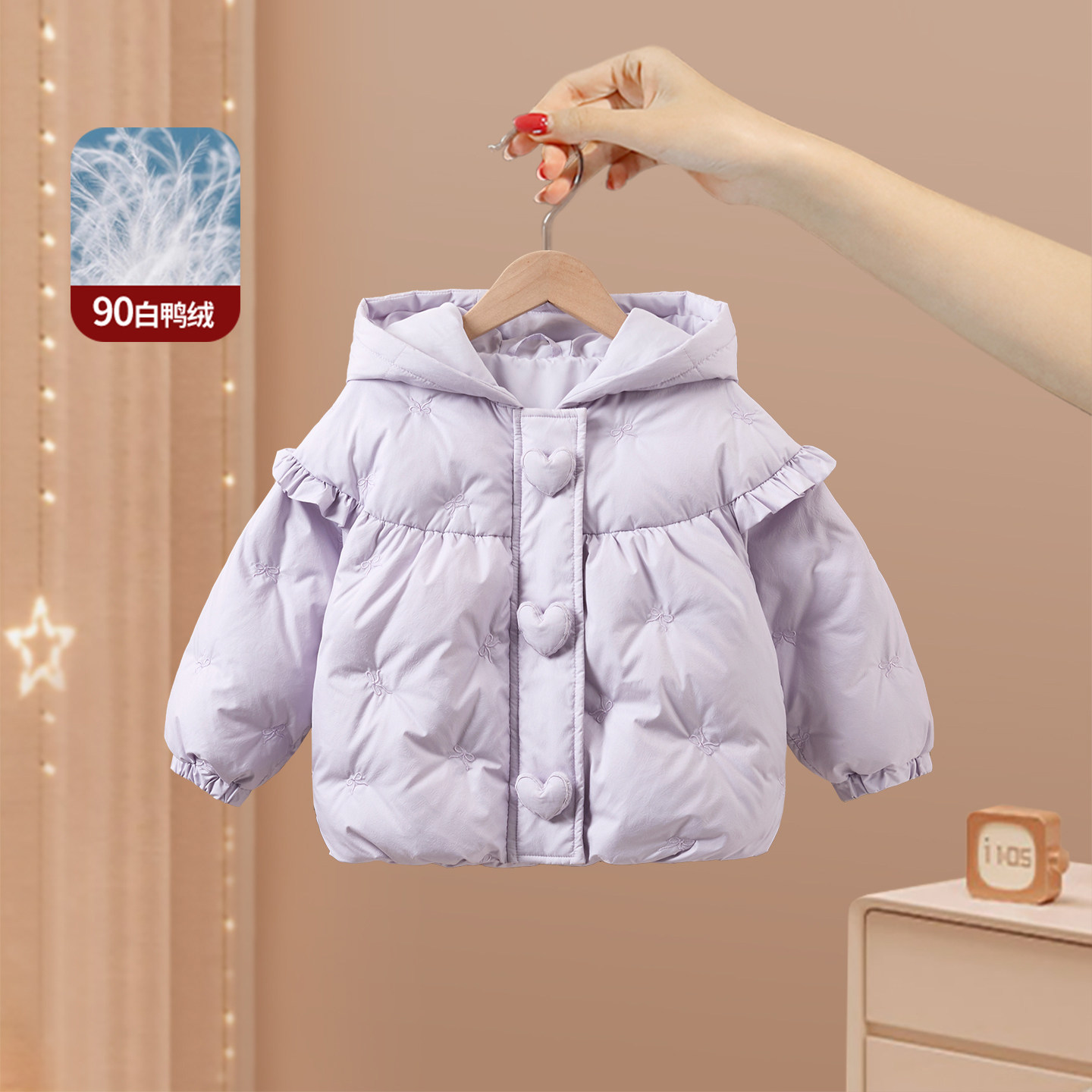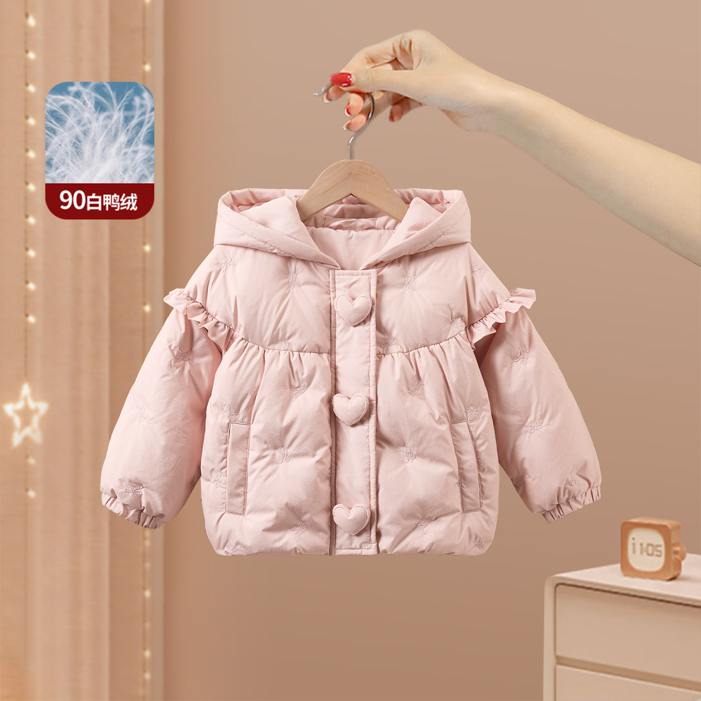 女童羽绒服90白鸭绒冬装小童洋气2025新款女宝宝冬季保暖儿童外套
