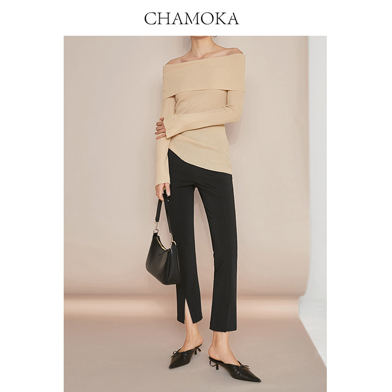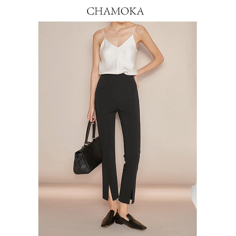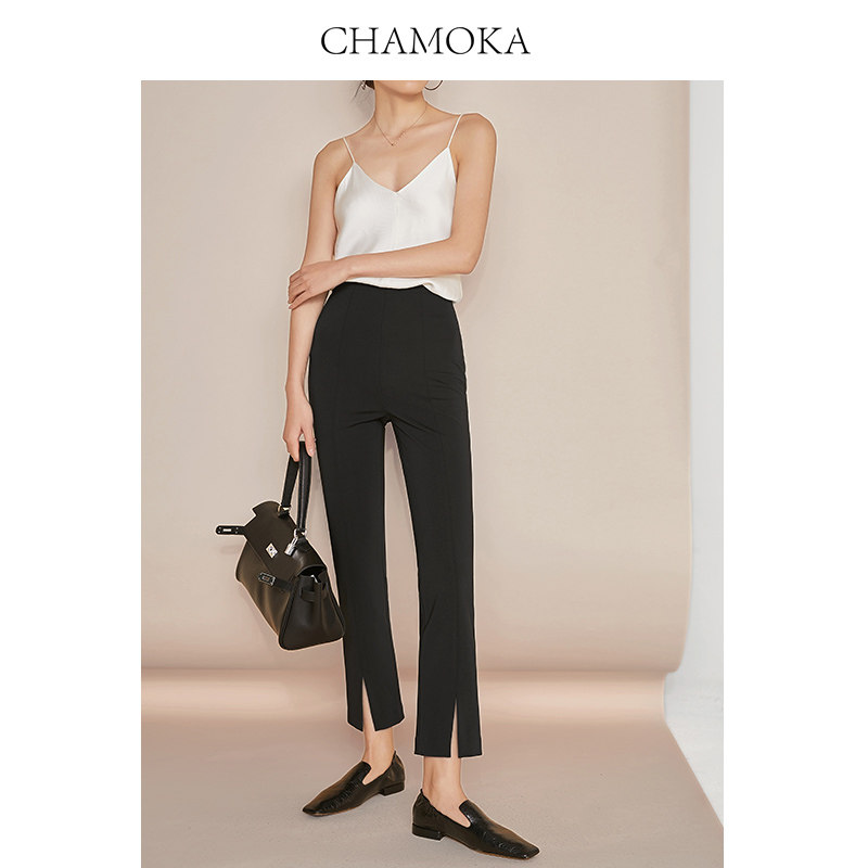 夏莫卡九分裤开叉裤显瘦直筒裤小脚裤弹力休闲裤黑色西装裤女838
