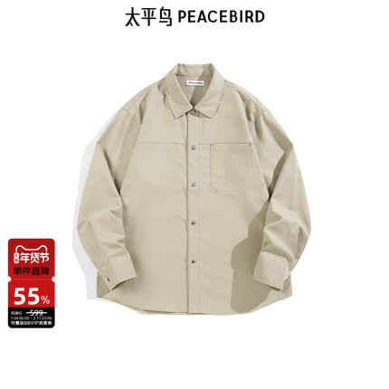 太平鸟男装户外 工装长袖衬衫秋季纯色潮流时尚衬衣外套