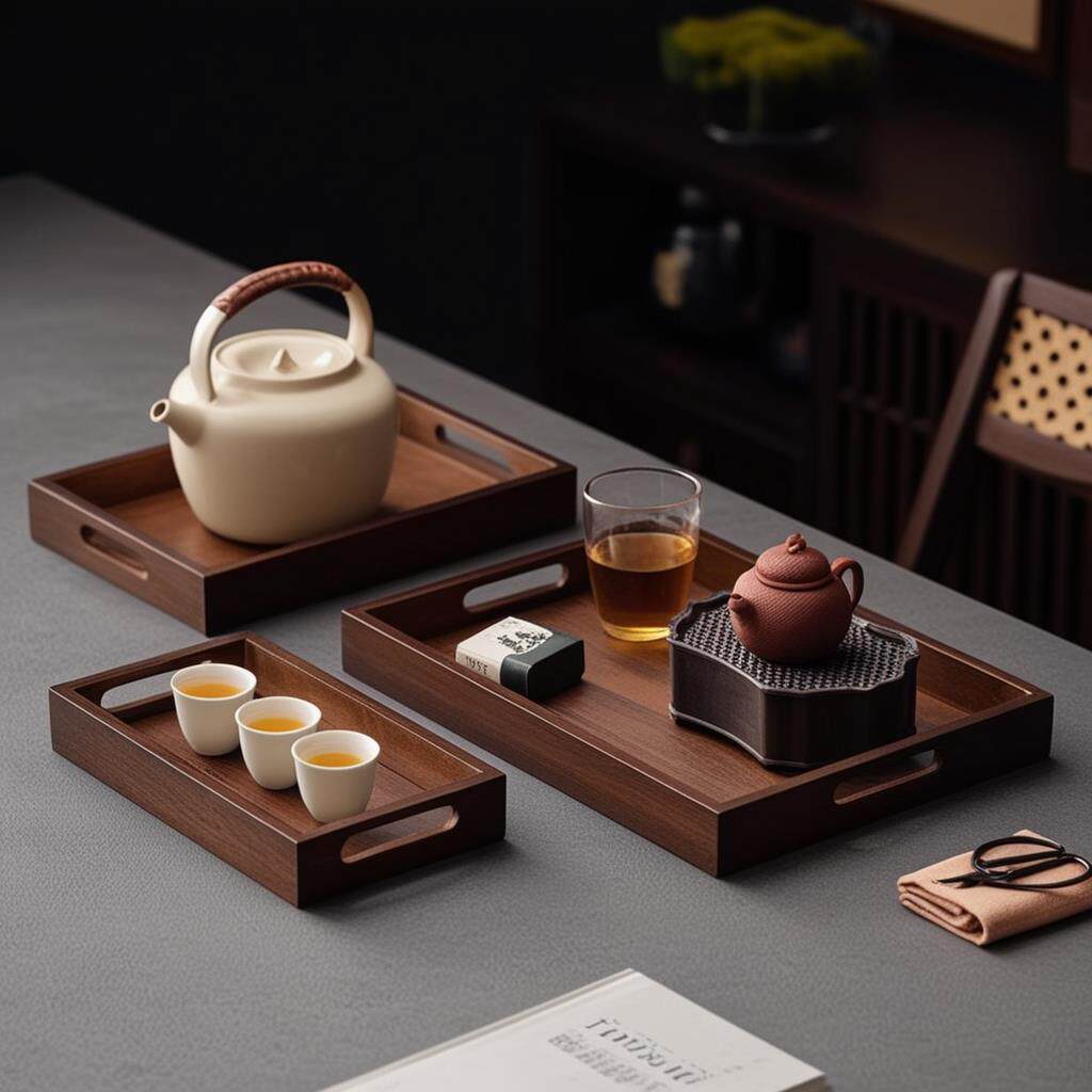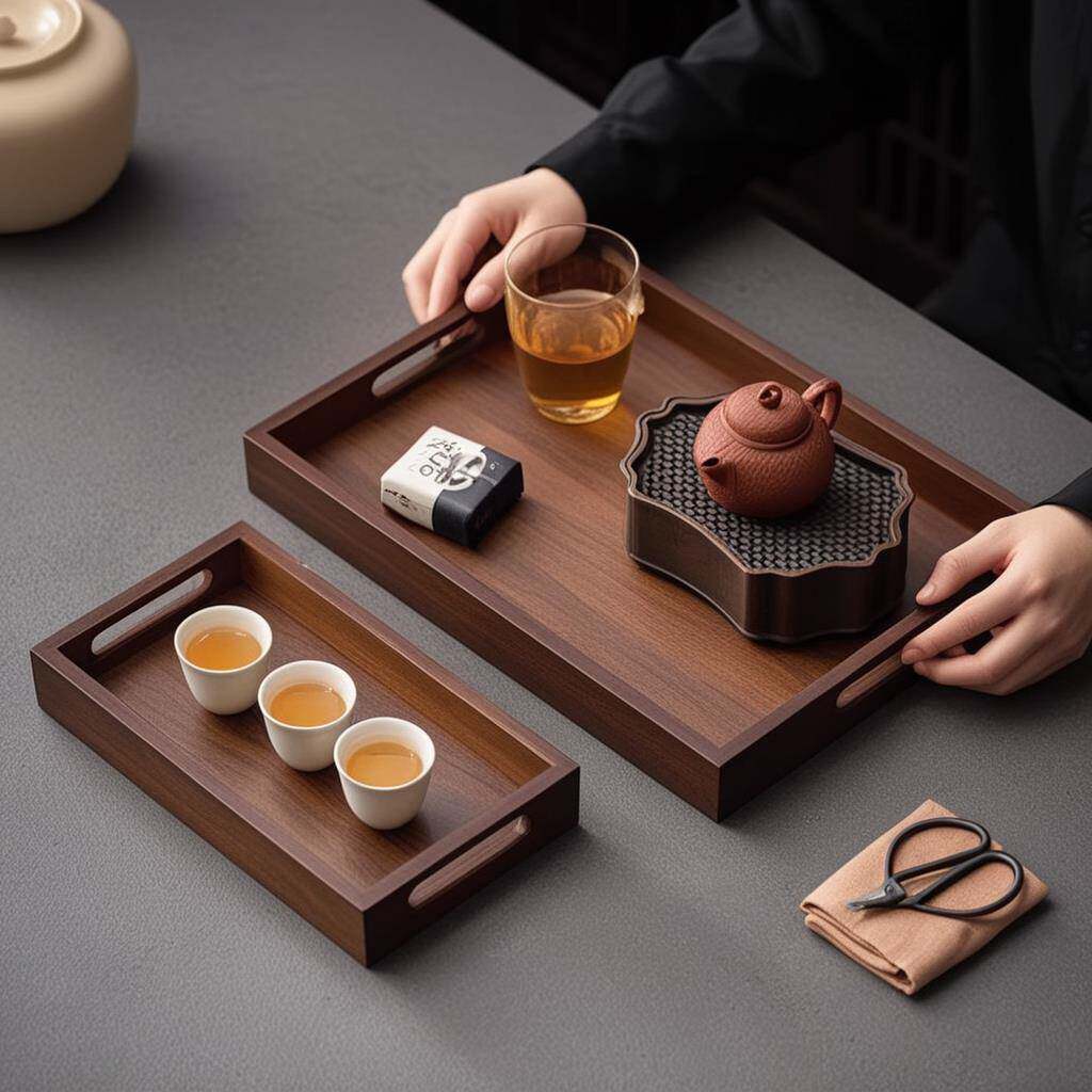 茶水托盘胡桃木色竹制商用餐厅家用蛋糕零食干果盘放茶杯托收纳盘