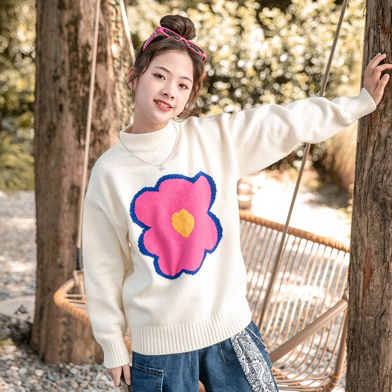 82477秋冬款新款女童花朵毛衣儿童针织打底线衫套头女孩大童洋气