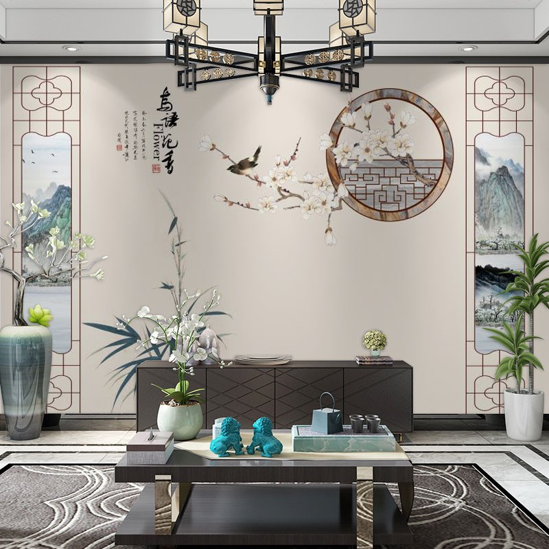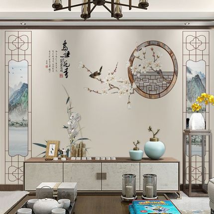 花鸟竹子电视背景墙壁纸现代新中式壁画客厅卧室墙布沙发背景壁布