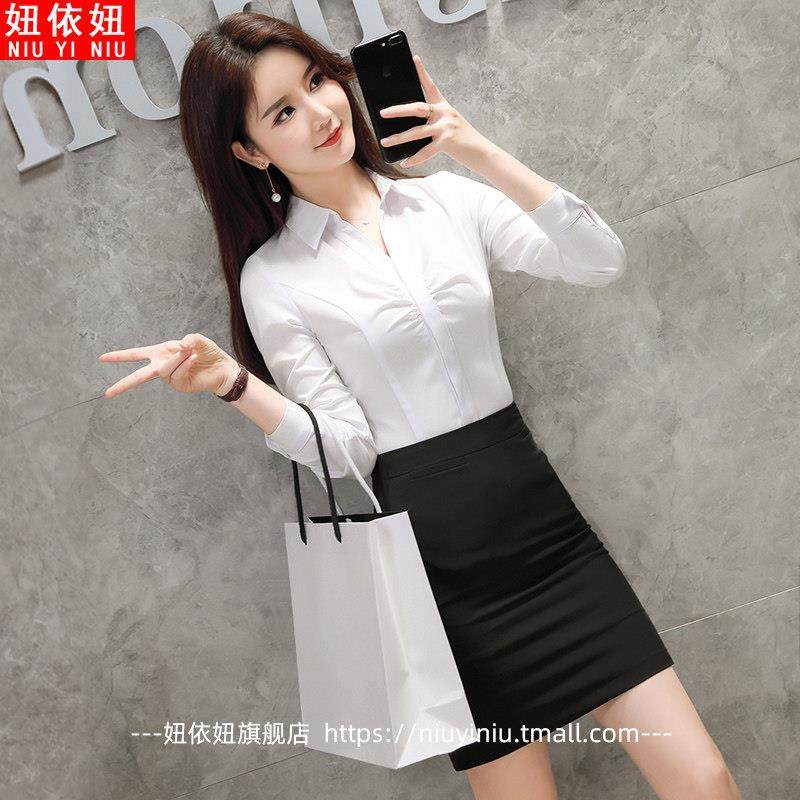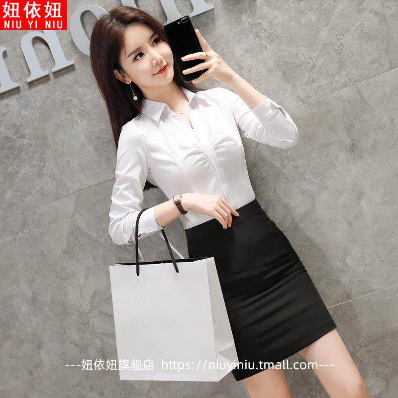 V领衬衫女长袖韩版职业装2025新款气质工作服白色衬衣OL工装上衣