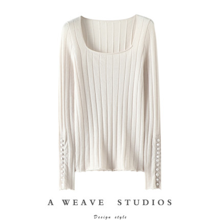 气质王炸!好搭配!精纺山羊绒衫女方领纯羊绒毛衣针织打底衫秋冬