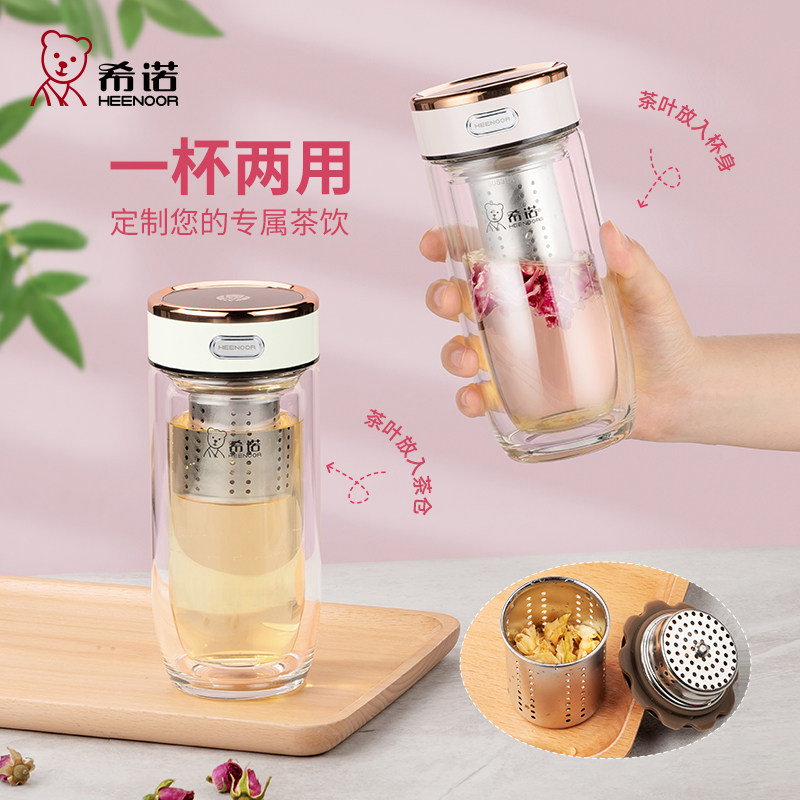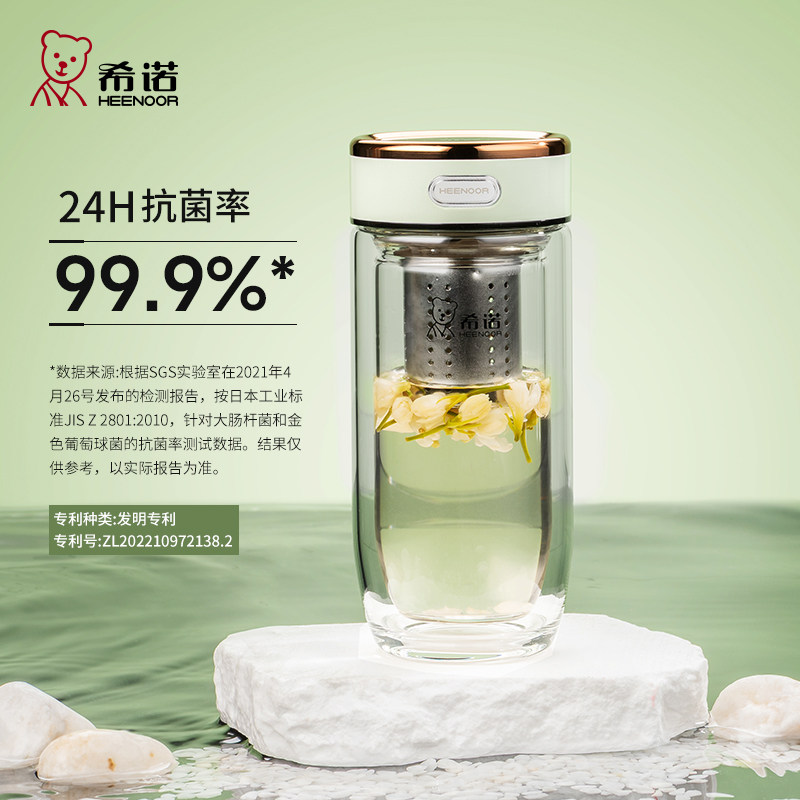 希诺双层玻璃杯高档商务办公室抗菌泡茶杯男女士家用隔热喝水杯子