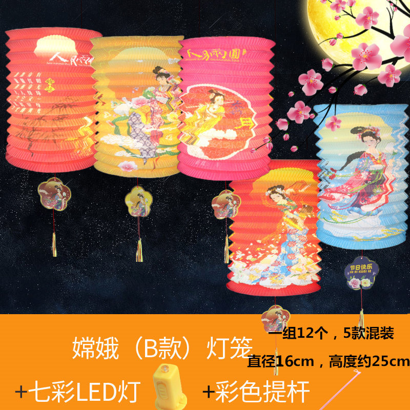 中秋灯笼 春节儿童卡通手提折叠纸灯笼小孩LED发光玩具传统花灯