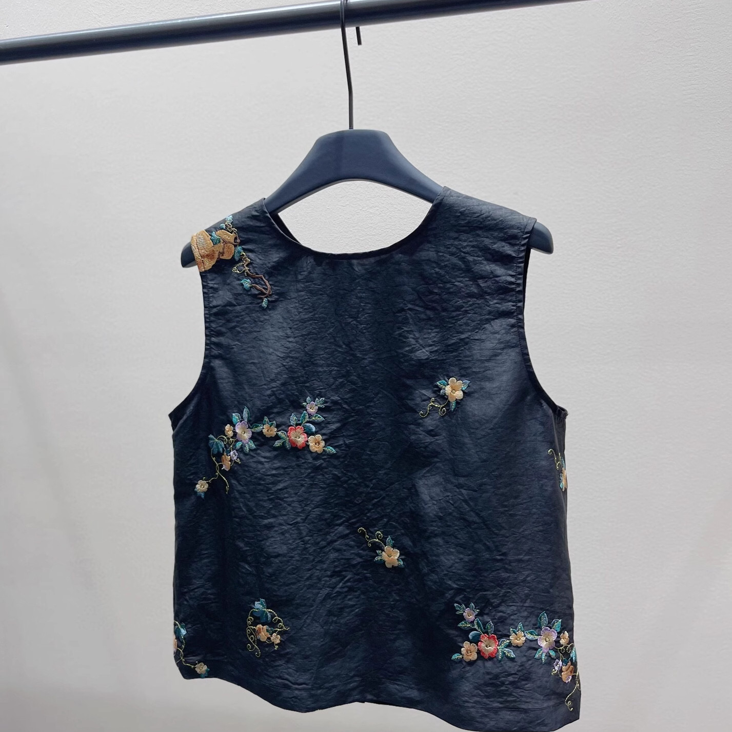 桑蚕丝龟纹香云纱重工刺绣马甲夏季款新中式轻国风宽松短袖衬衫