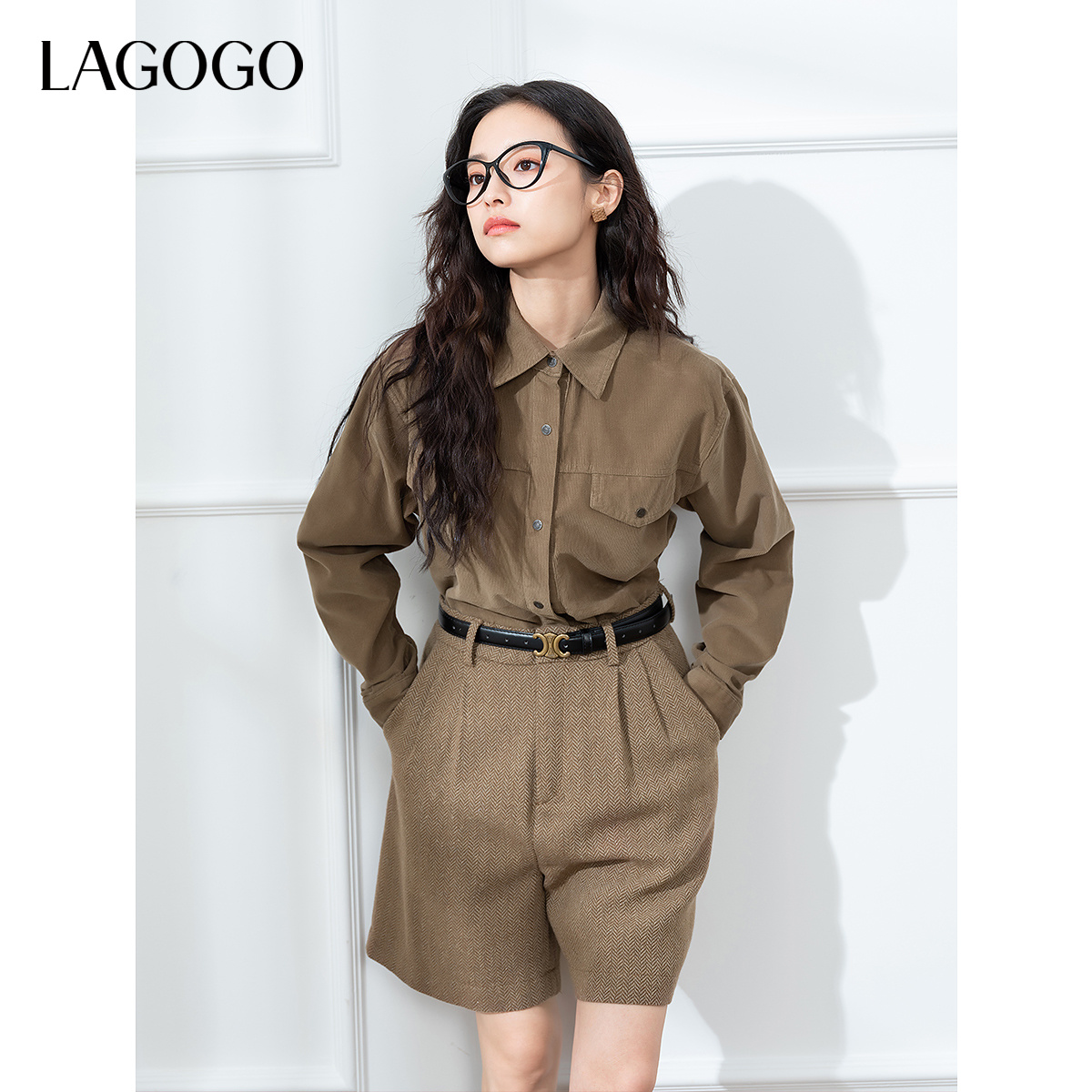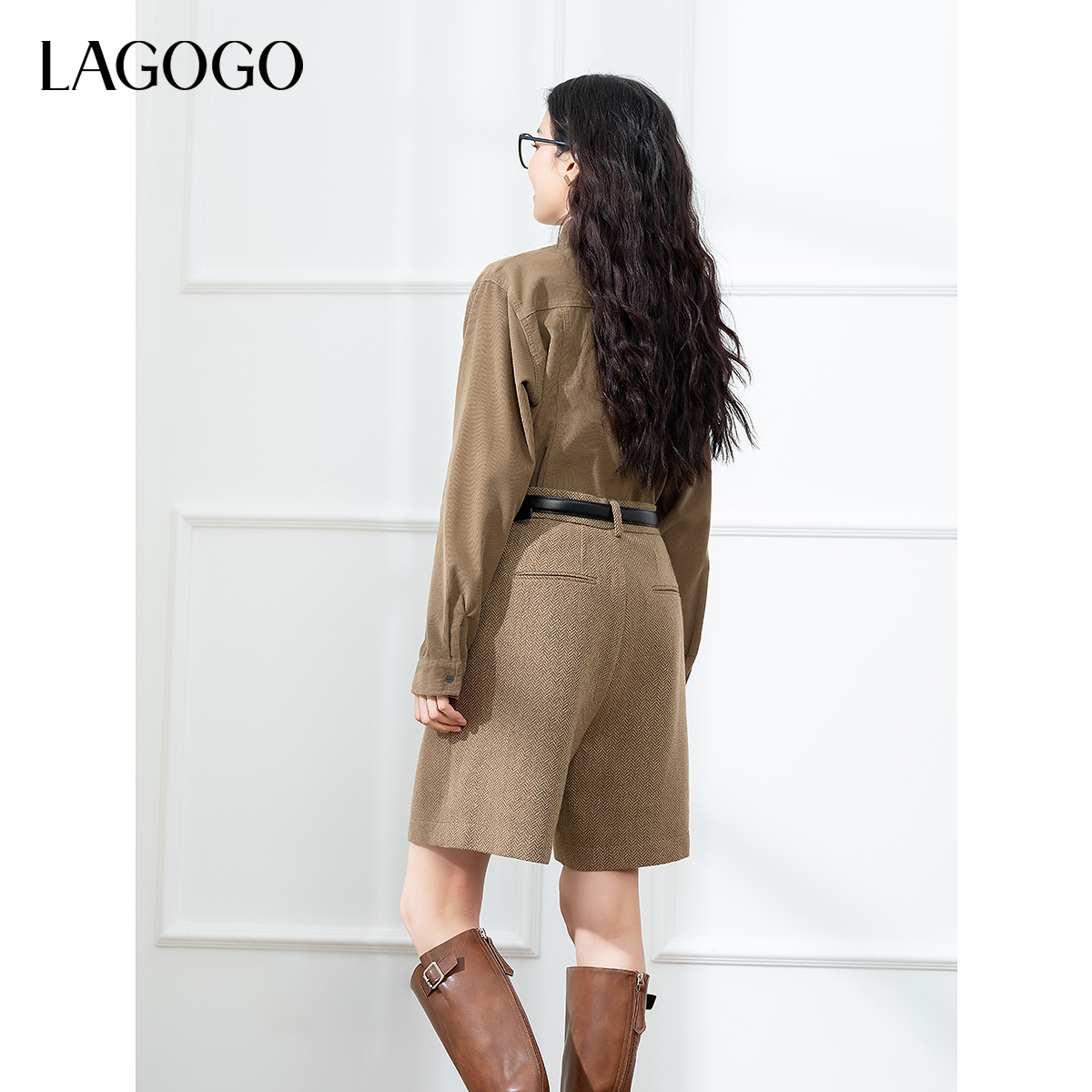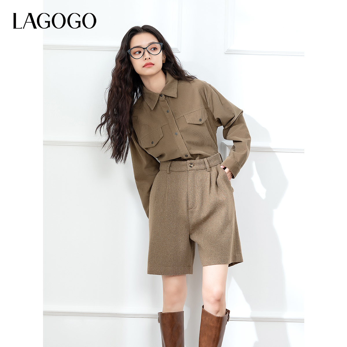 LAGOGO高腰显瘦巴恩风短裤女拉谷谷冬季新款含羊毛五分裤
