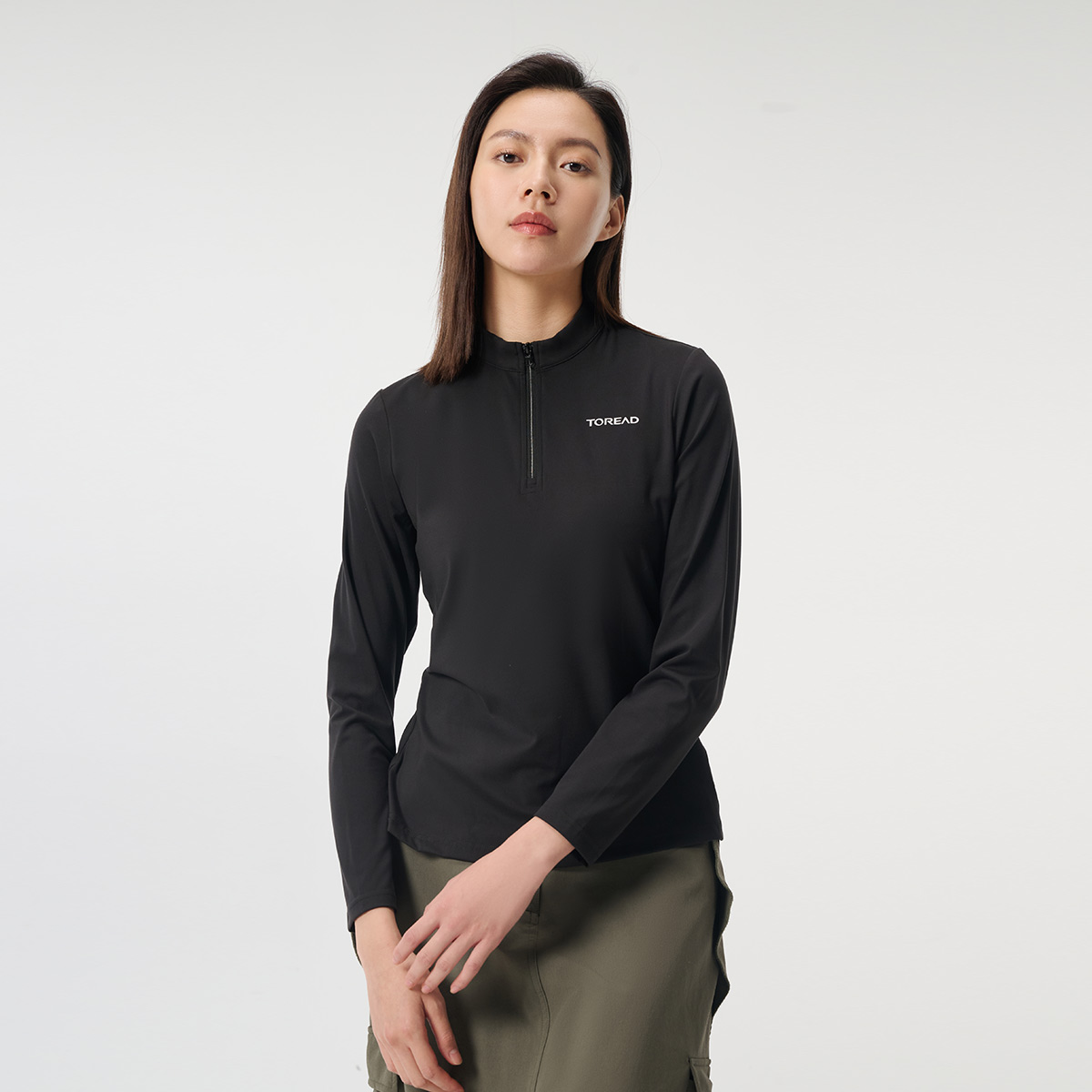 探路者情侣功能长袖T恤春秋户外运动亲肤弹力柔软透气女上衣