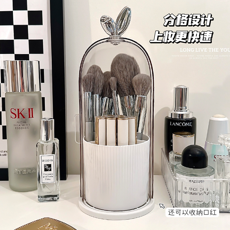 桌面化妆刷收纳筒防尘大容量可旋转高级感化妆品收纳盒刷子收纳桶