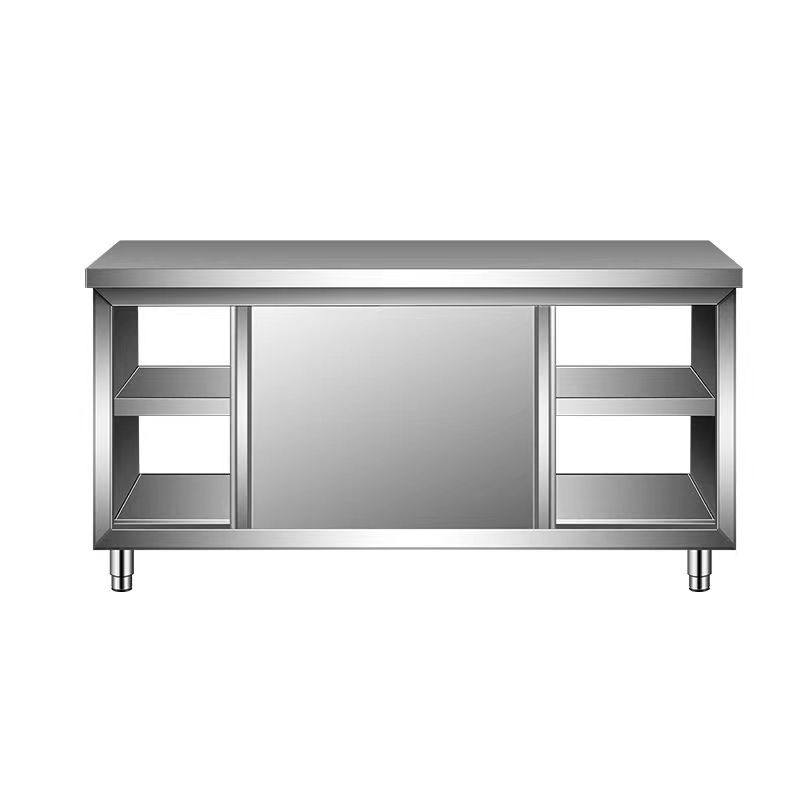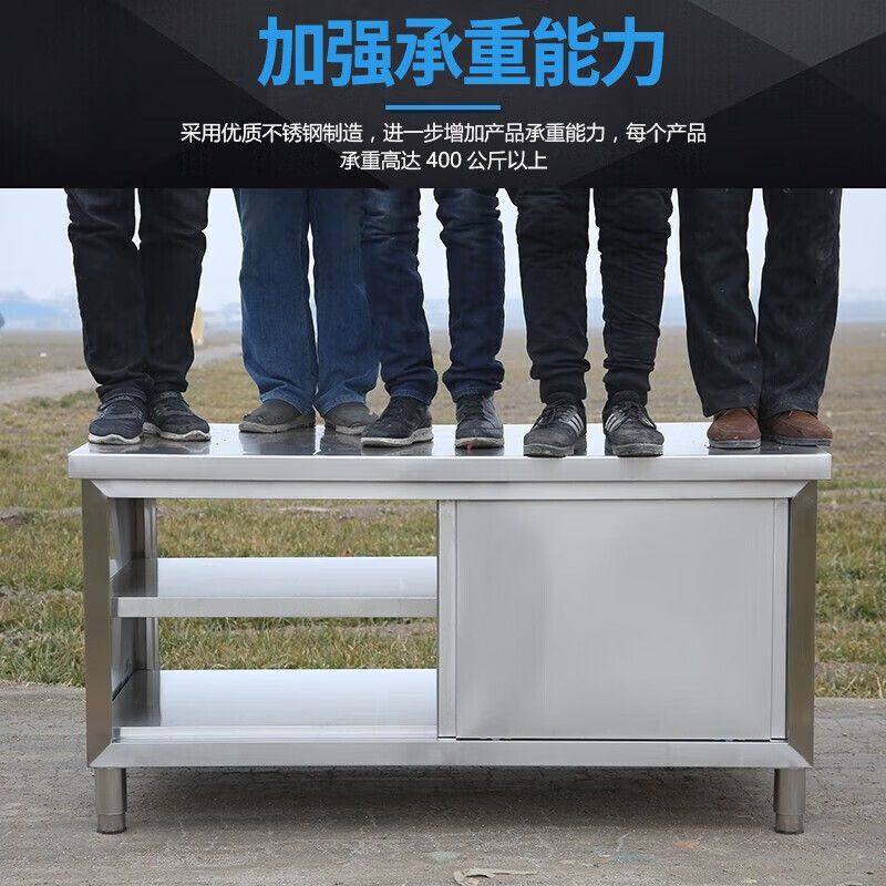 304不锈钢焊接一体工作台厨房用打荷操作台面案板切菜桌商用拉门