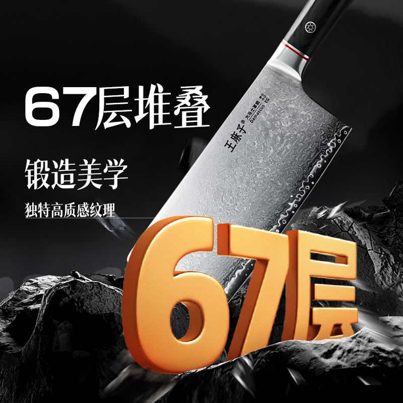 王麻子菜刀67层大马士革钢切片刀锋利切肉切菜切片刀厨房专用刀具