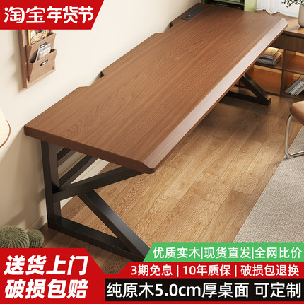 实木电脑桌台式家用办公桌卧室书桌学习桌双人长条桌工作台电竞桌