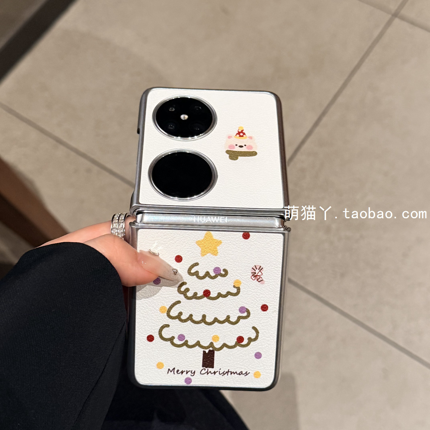 ins波点圣诞树适用华为Pokcet2手机壳新款purax典藏版折叠屏三星zflip6/7FE皮纹外壳小米mixflip2简约女荣耀v