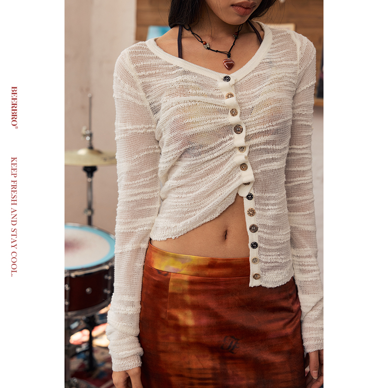 BeerBro『音乐节专场』清凉透气空调衫基础薄透毛织开衫上衣