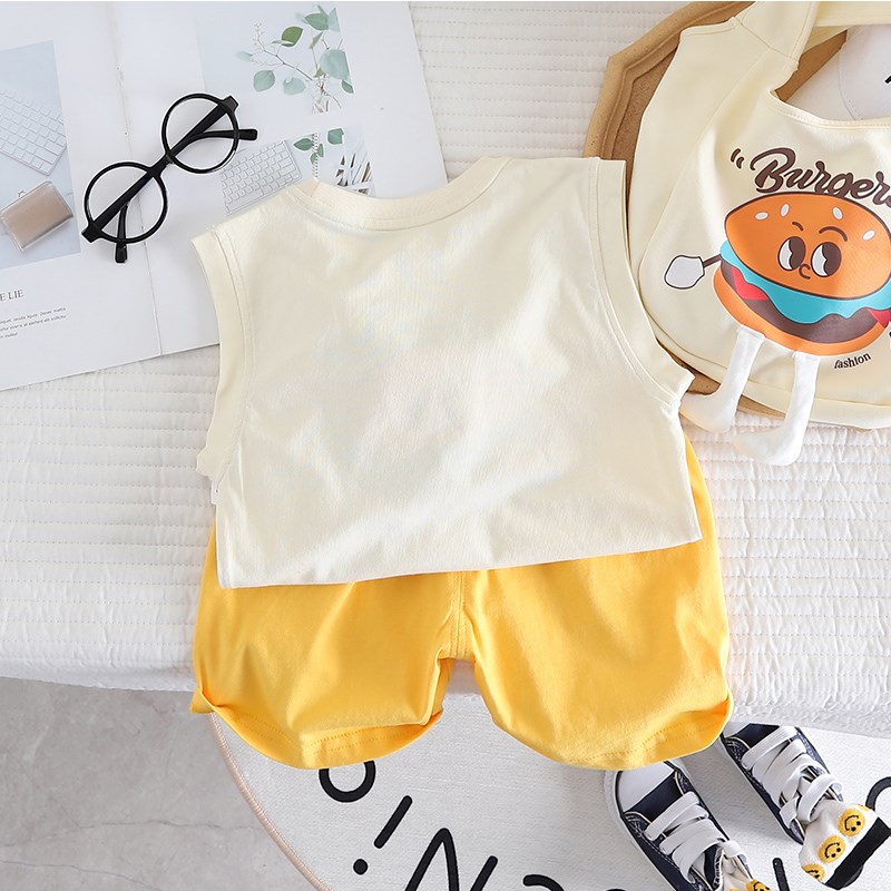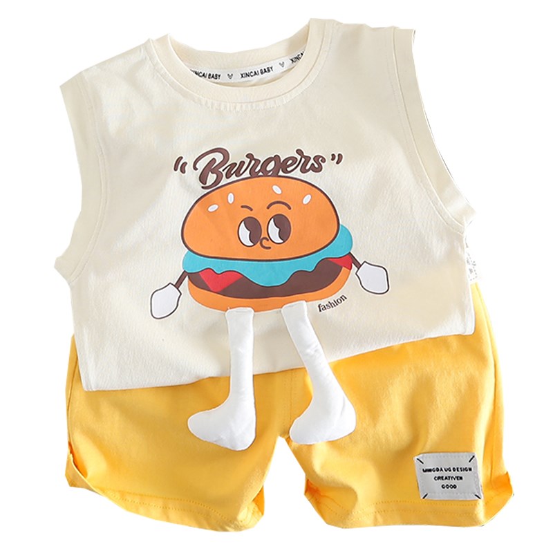 女童夏装套装2025年儿s童男童背心短裤汉堡卡通韩版姐弟装两件套