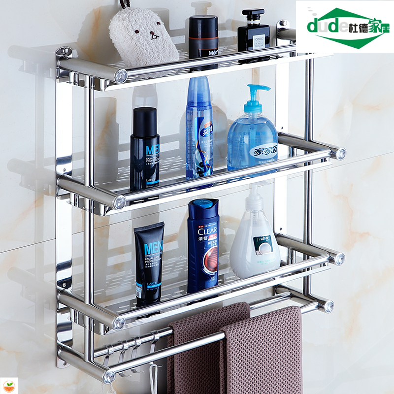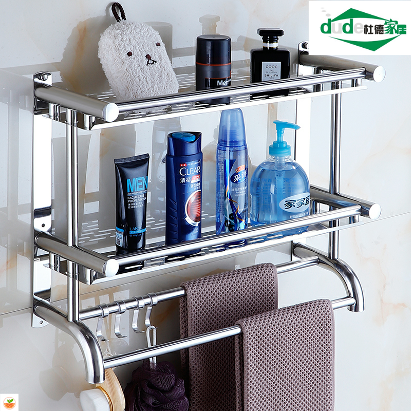 浴室洗手间不锈钢毛巾架厕所卫生间双层三层双杆置物架壁挂免打孔