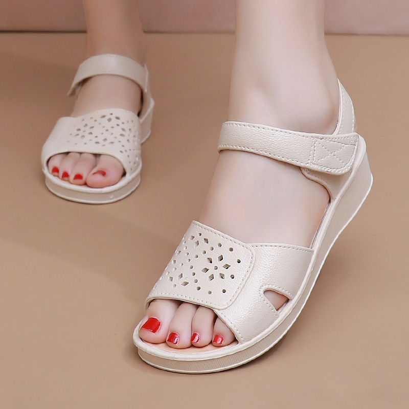 妈妈凉鞋时尚中老年50岁款夏季软底女鞋中年平底老人防滑奶奶舒适