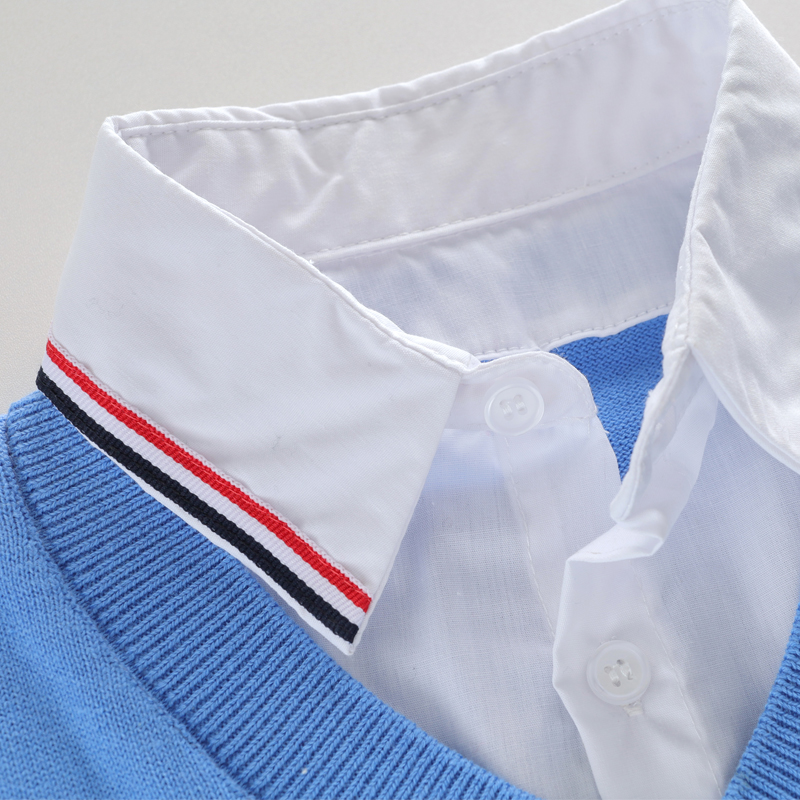 男童毛衣春秋薄款儿童纯棉针织衫假两件中大童男孩衬衫领打底衫潮