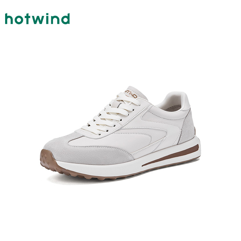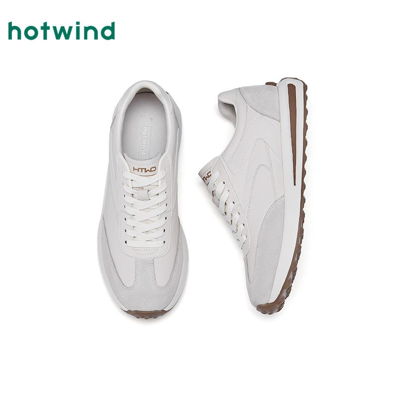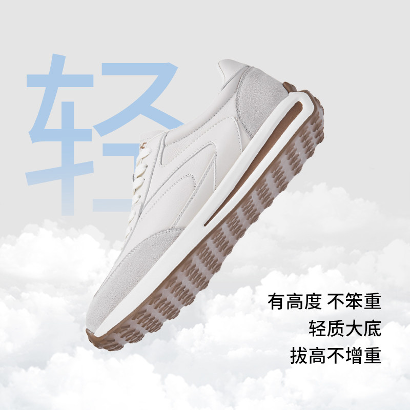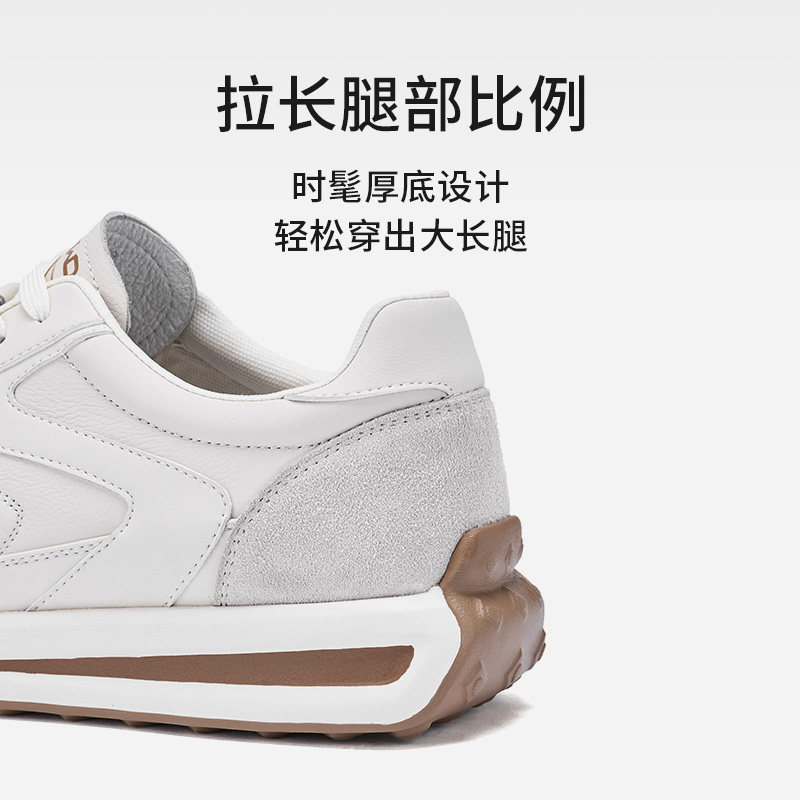 热风男鞋2026年春季新款男士厚底运动休闲鞋米色百搭户外跑步鞋子