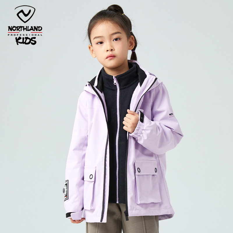 诺诗兰儿童冲锋夹克胡杨林户外三合一硬壳风衣女童防风防泼水外套