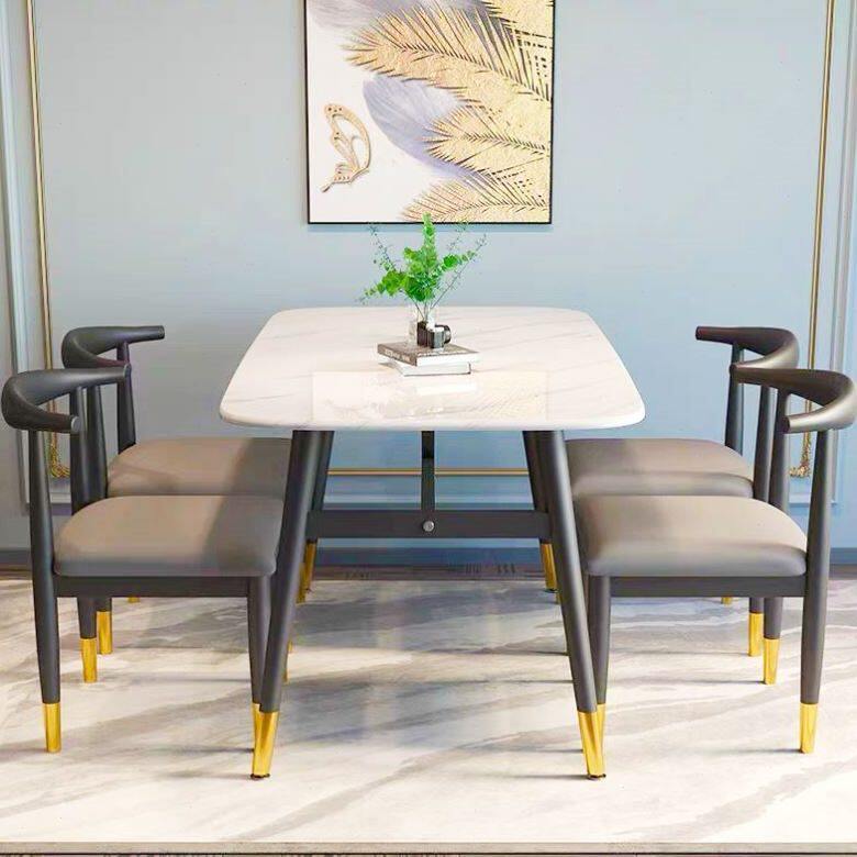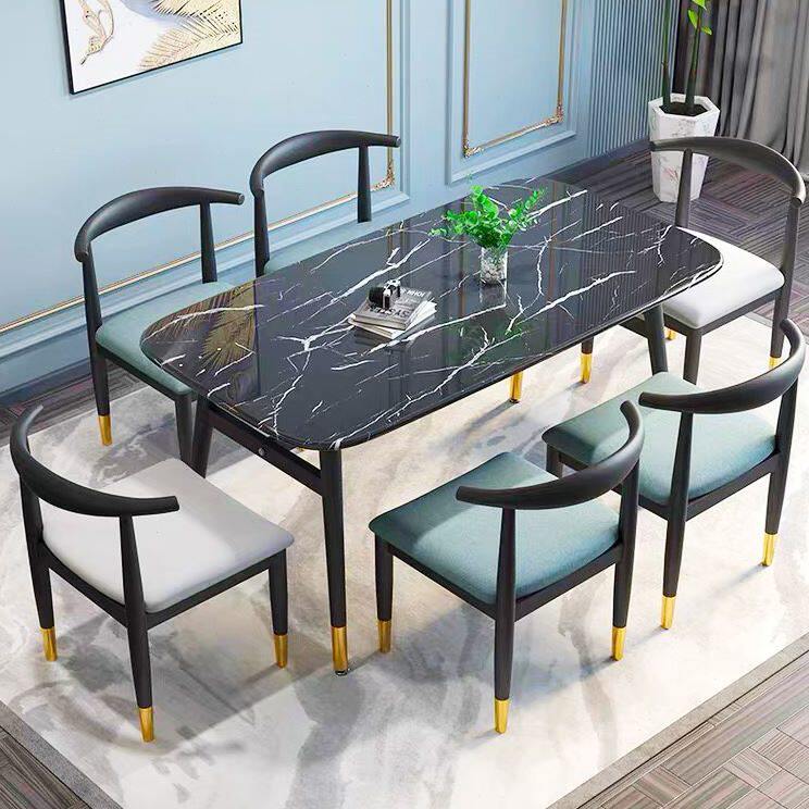 餐桌家用小户型简约吃饭桌子长方形仿大理石商用餐桌椅组合