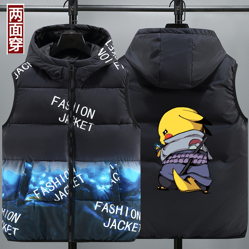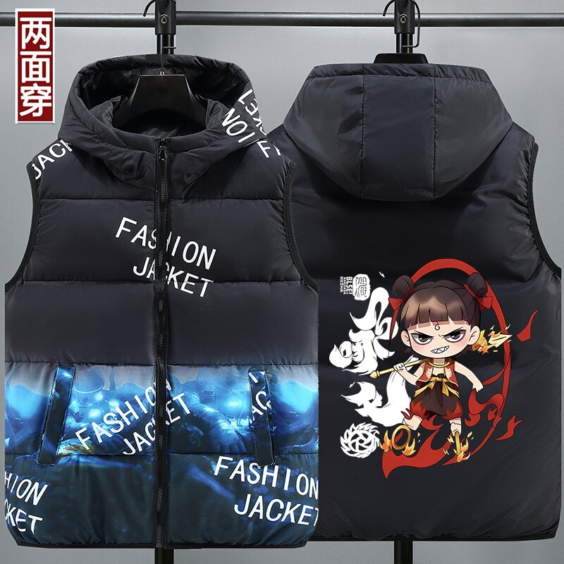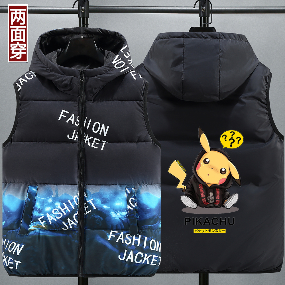 马甲男孩初中高中学生秋冬季两面穿棉背心青少年连帽加厚马夹外套