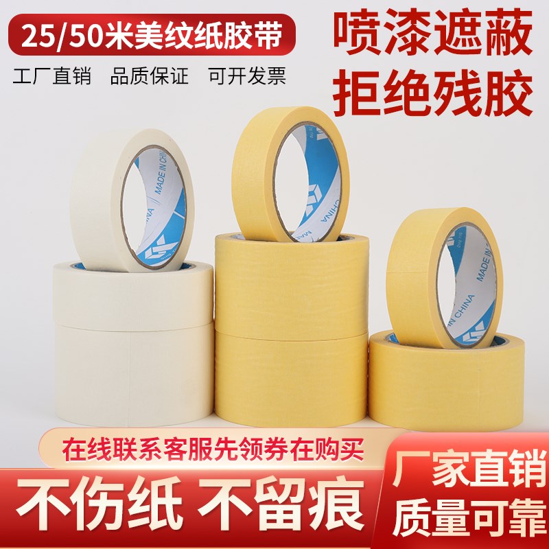弱粘性美纹纸和纸胶带墙面艺术漆低粘度手撕无痕遮蔽胶带施工美缝